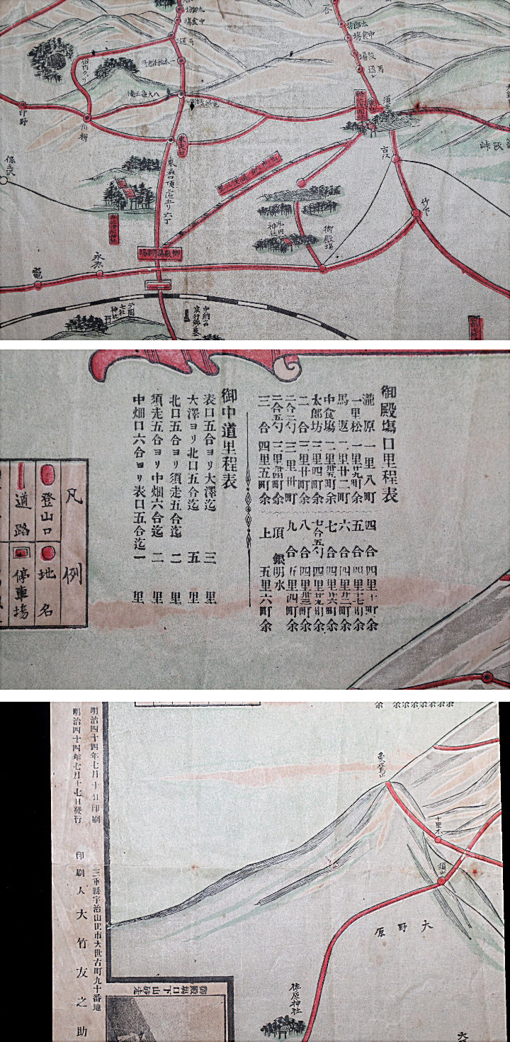冨士登山名所案内図 附/明細景色図 Mt.FUJI 東表口 明治44年(1911年) 三重県 大竹友之助 收藏
