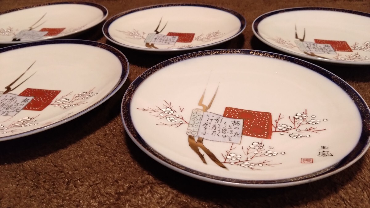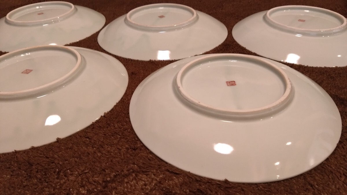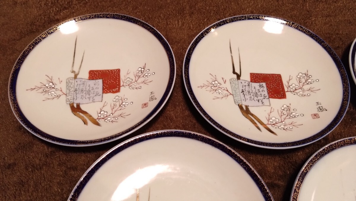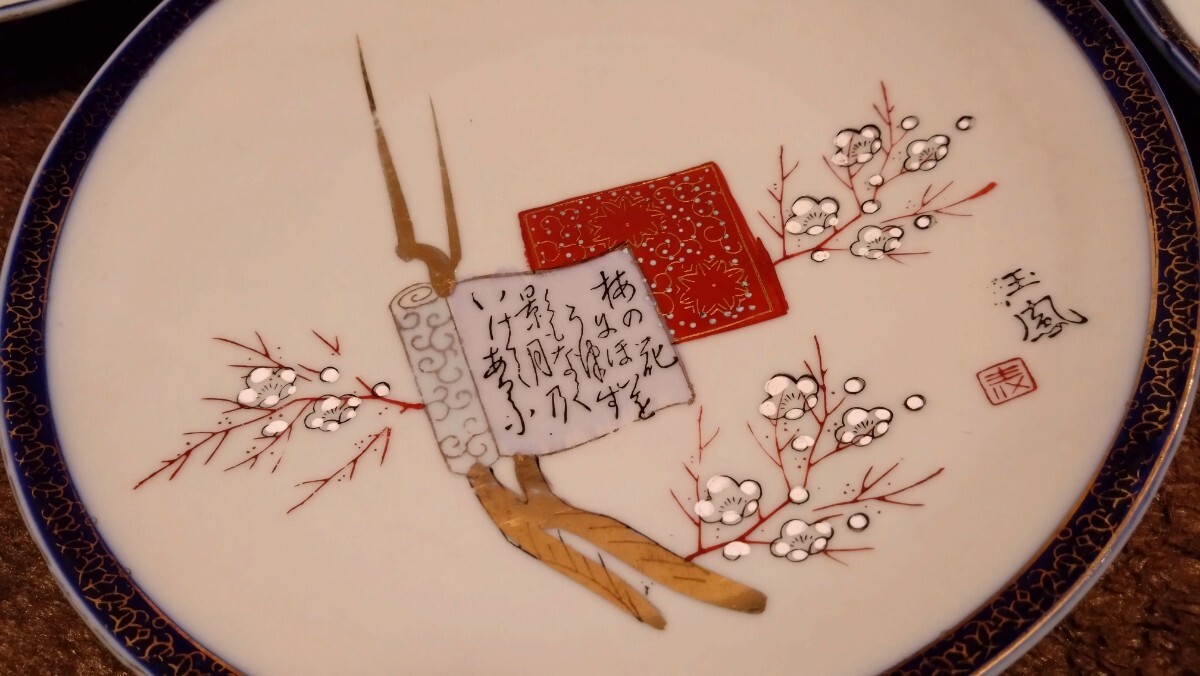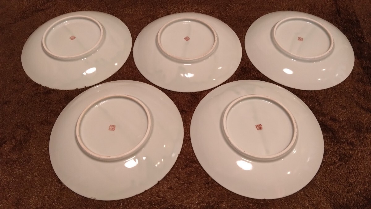 古伊万里 伊万里 古九谷 九谷焼 大皿 色絵 金襴手 華の図 5客