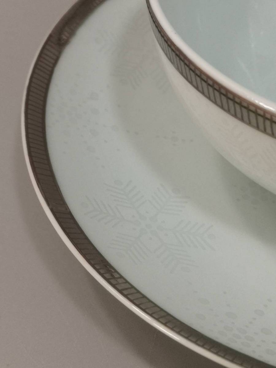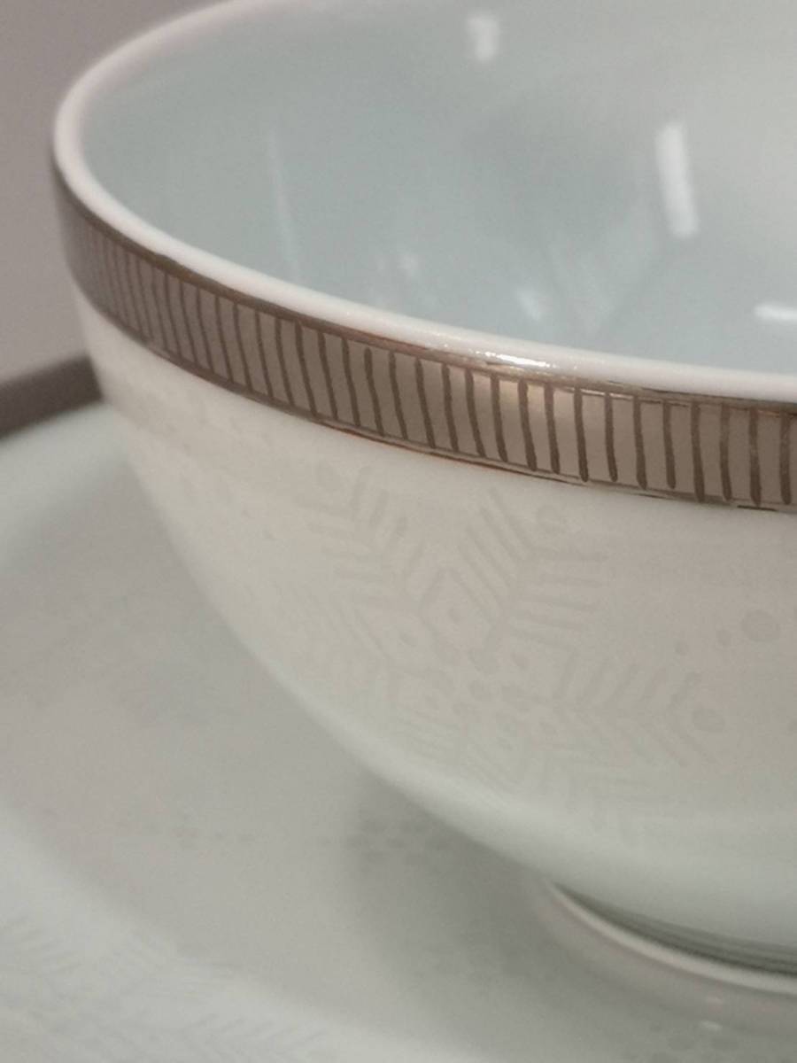 ●十四代 今泉今右衛門 色絵雪墨墨はじき雪文 紅茶碗です