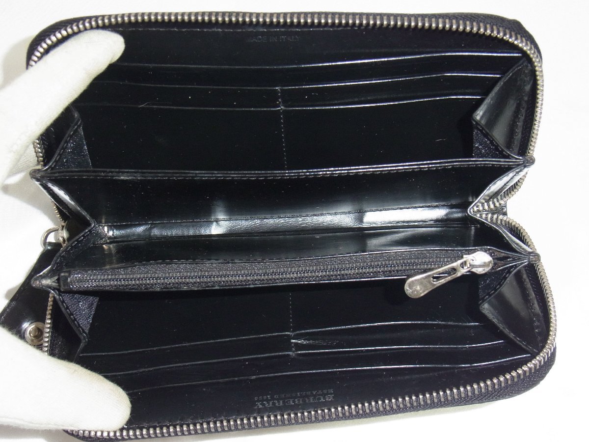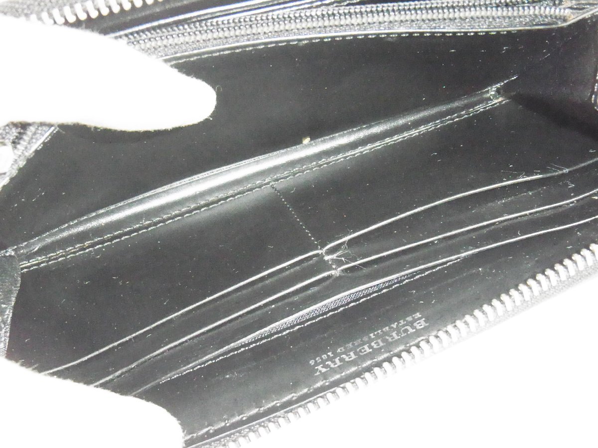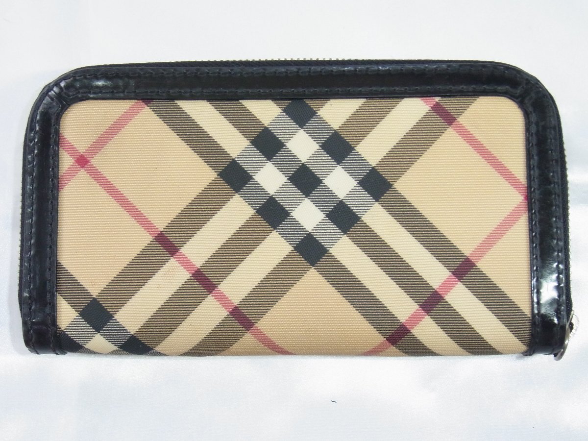 バーバリー BURBERRY 財布 ロング ラウンドファスナー タータンチェック PVCレザー ブラックxベージュ 中古良品 收藏