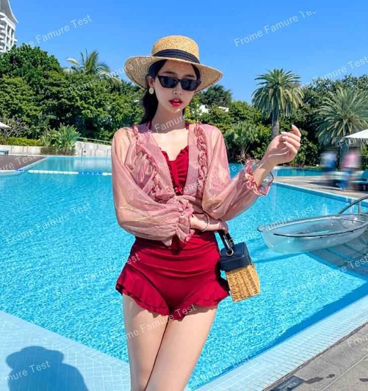 水着 ワンピース レディース 体型カバー オールインワン 大きいサイズ ママ 水泳服 スイムウェア S レッド 收藏