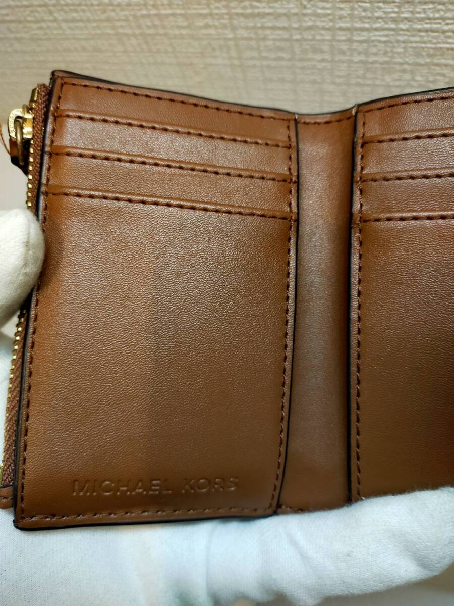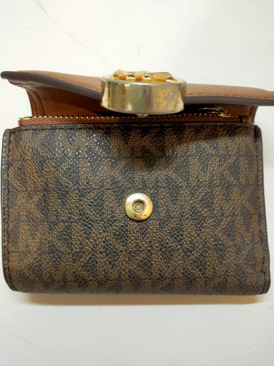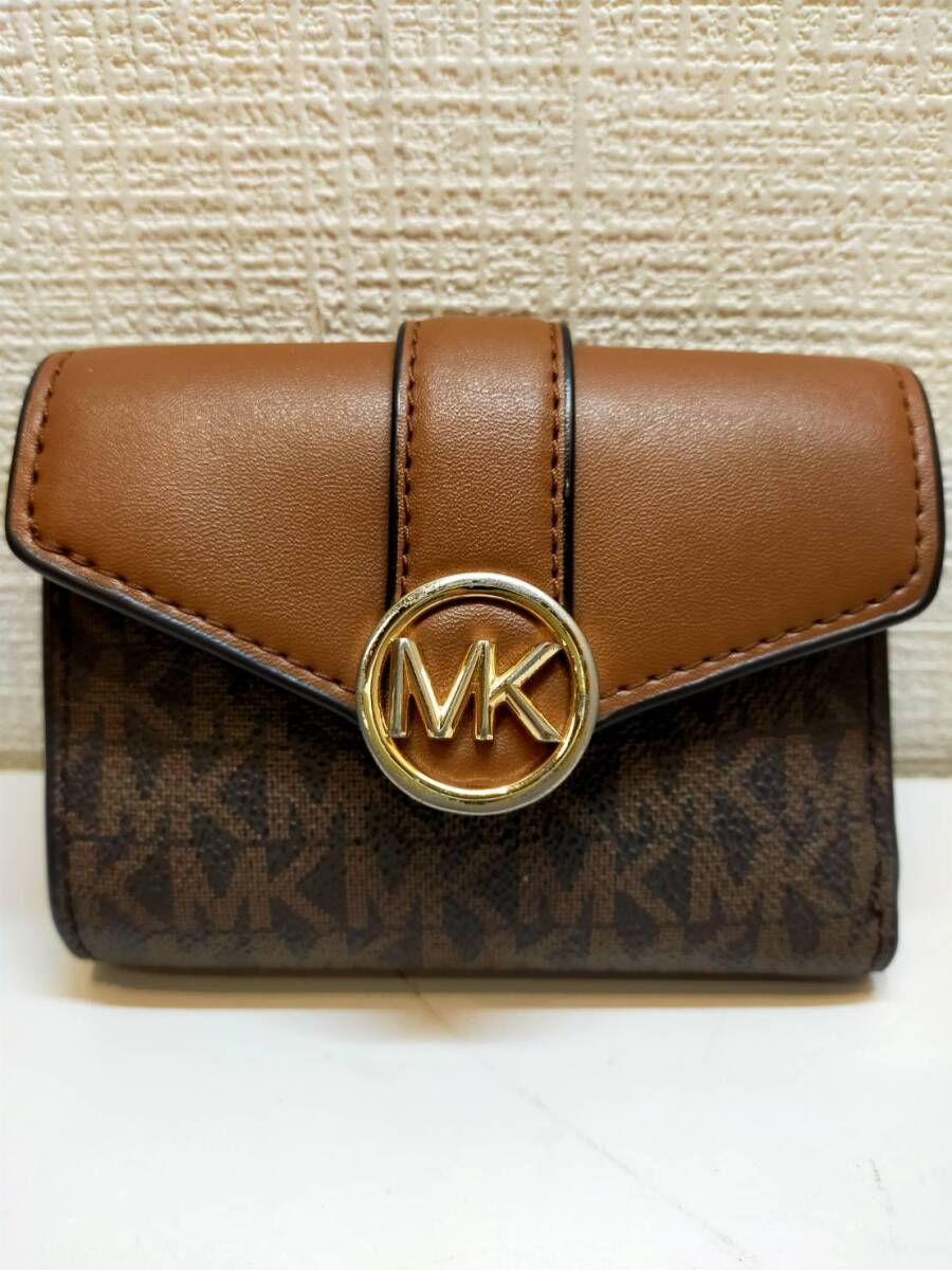 H 【Michael Kors】マイケルコース 三つ折り財布 PVC モノグラム ロゴ フラップ ビルフォールド 35S2GNMF8B 札入れ ゴールド金具 收藏