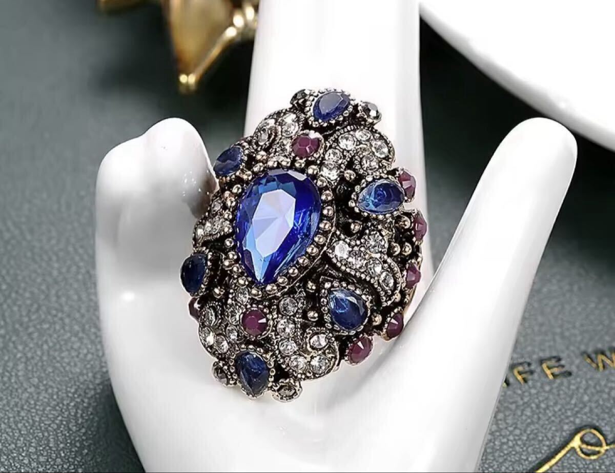 1円【大目玉セール!】装飾指輪 リング ★Czダイヤ アンティーク メンズ レディース ジュエリー ブルー サファイア シルバー 大粒