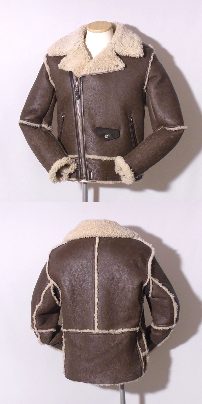 美品高年式Schott【ショット/シープスキンライダース3171062XL茶】ムートンB3/① 收藏