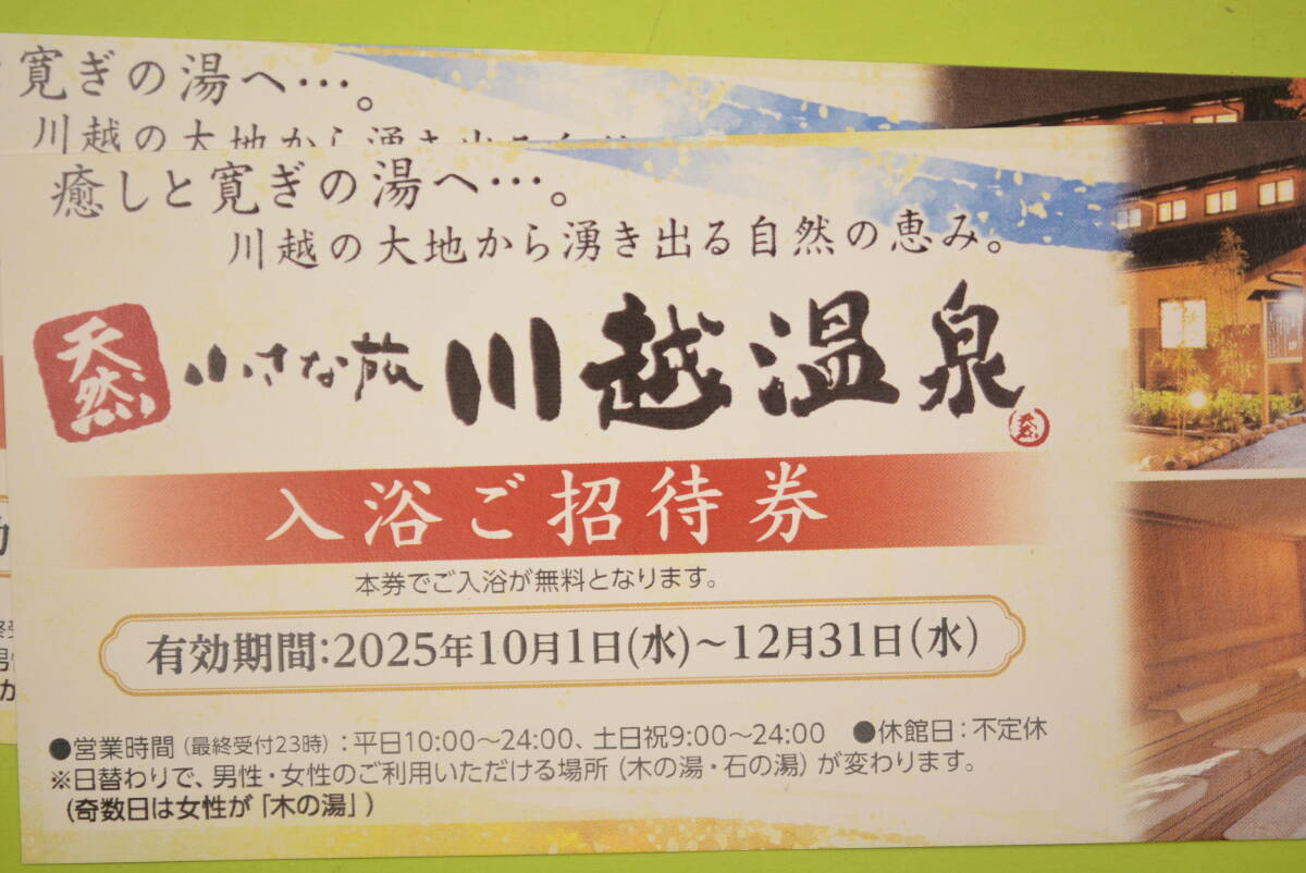 川越温泉 入浴ご招待 2025/10/1日から12/31迄 1枚500円2枚セット販売1000円 送料無料 收藏