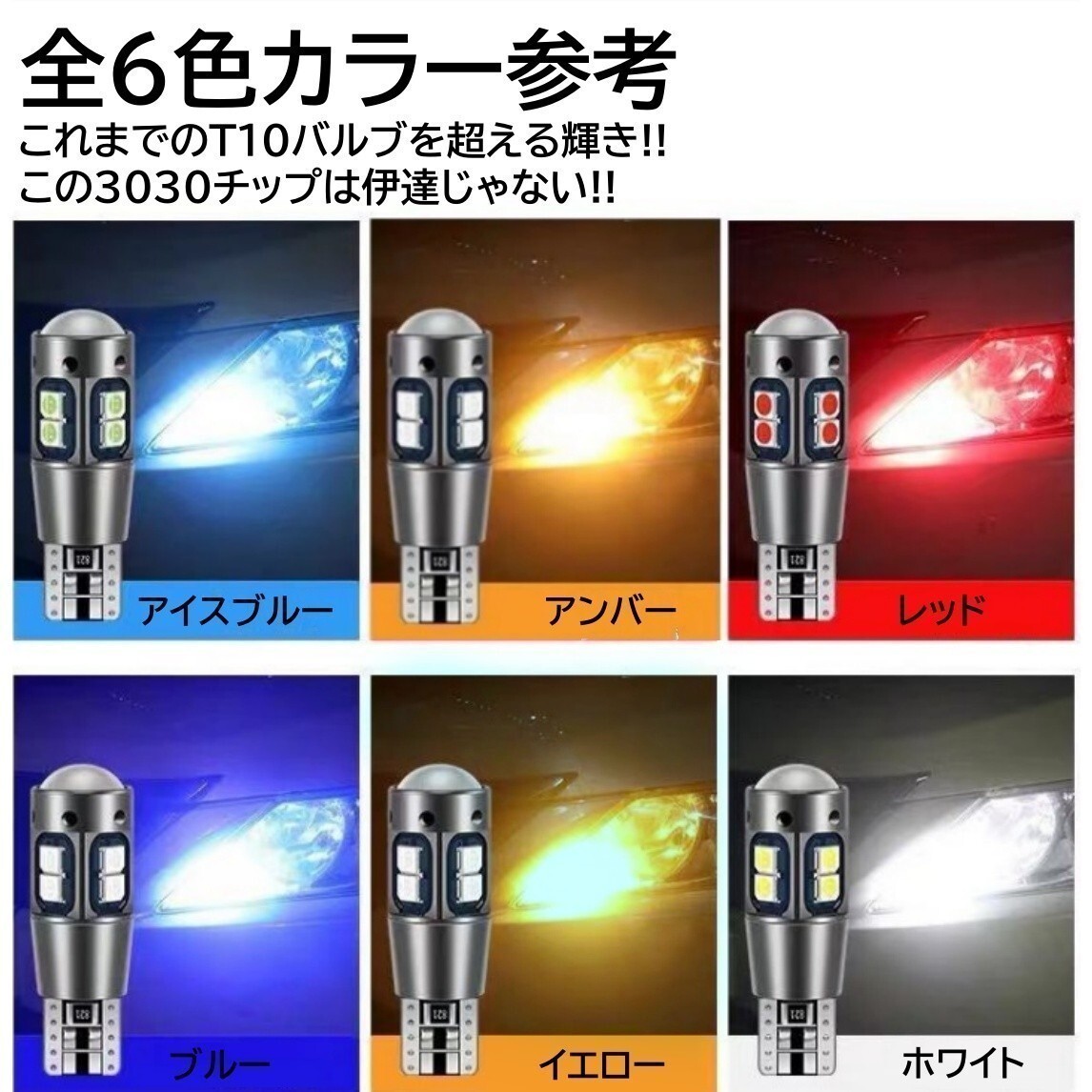【送料無料】2個 12V 3030SMD 爆光LED ホワイト T10/T15/T16 無極性 キャンセラー内蔵 LED ポジション球 バックランプ球 收藏