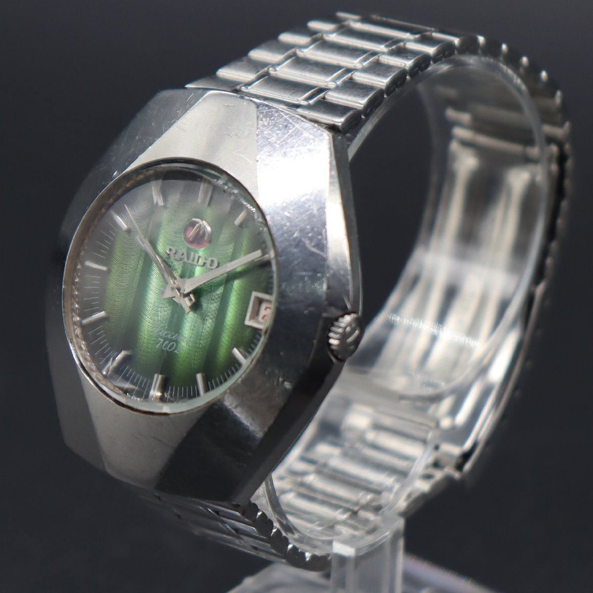 RADO Ticino ラドー ティチーノ 702 自動巻き カットガラス グリーン文字盤 赤デイト ジャンク スイス製 BAMBIブレス アンティーク メンズ 收藏