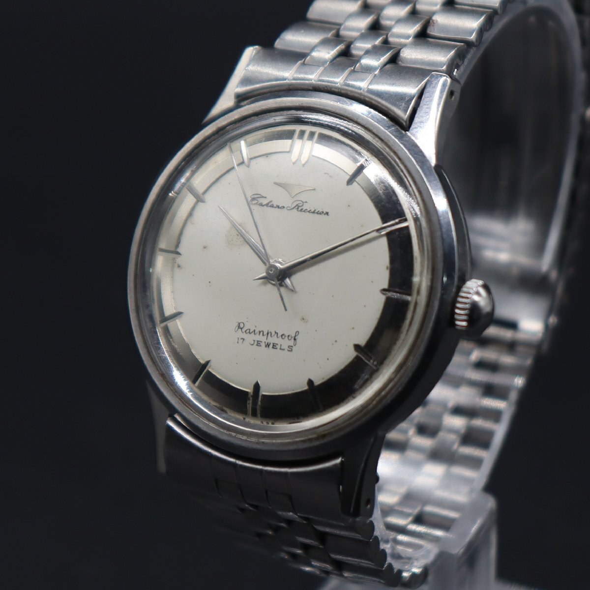 OH済 TAKANO PRECISION RAINPROOF タカノプレシジョン 手巻 17石 彫り込みインデックス 変わり文字盤 1960年代 アンティーク メンズ腕時計 收藏