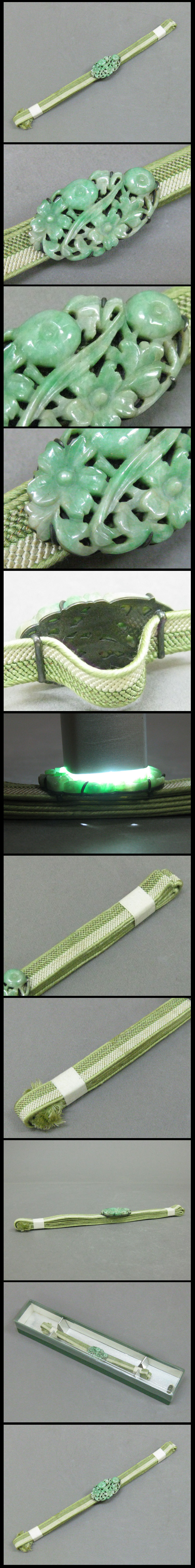 【心庵】時代物 翡翠 ヒスイ 花彫刻/帯留 3.3×1.7cm B389 收藏