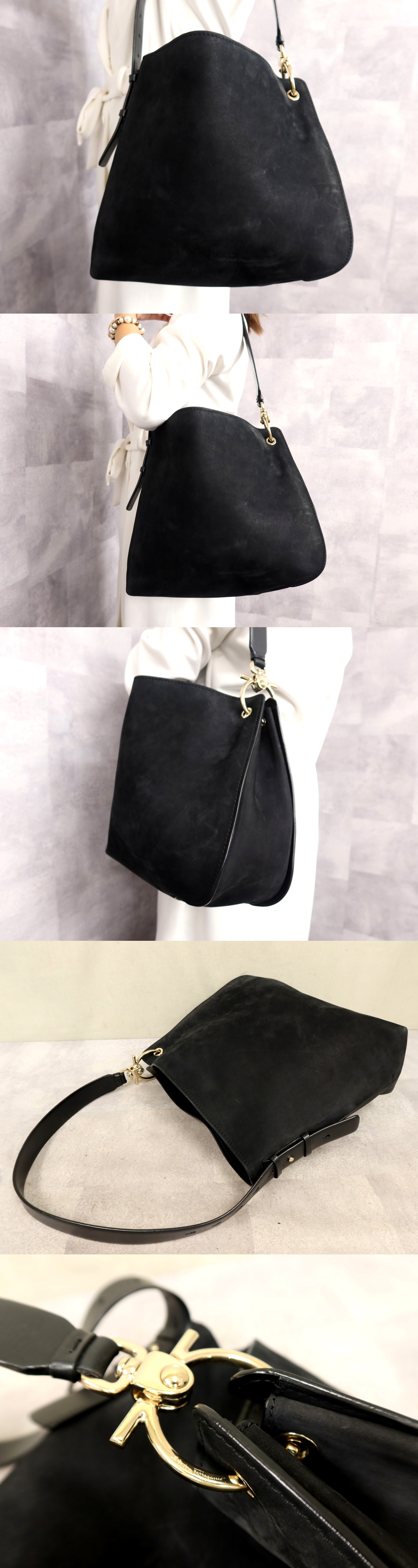 ●超美品●Salvatore Ferragamo フェラガモ●ガンチーニ●スエード カーフ レザー 本革●ショルダー バッグ●黒●G金具●B5 収納●Js62140 收藏