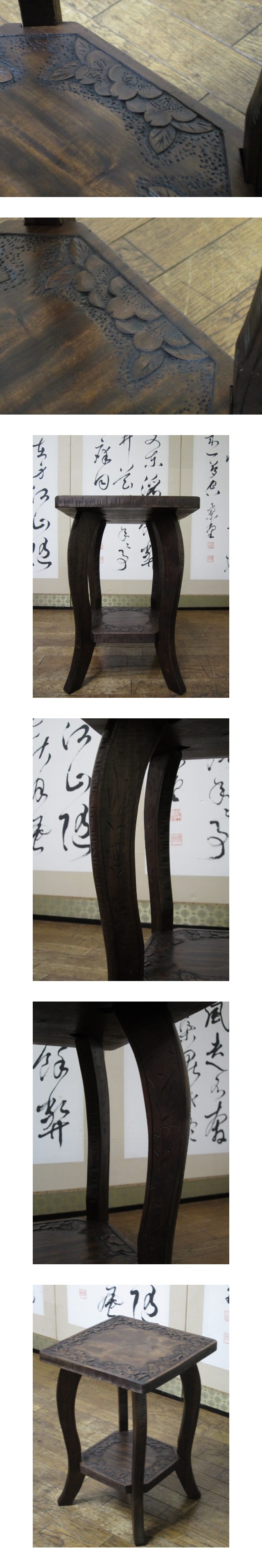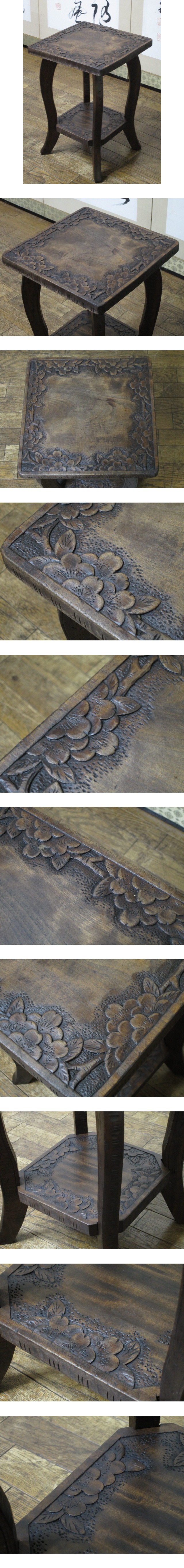 逸品 伝統工芸 軽井沢彫り 桜 彫刻 時代 サイドテーブル/花台/ランプ台/民芸/和家具(検)松本民芸/岩谷堂/仙台箪笥 收藏