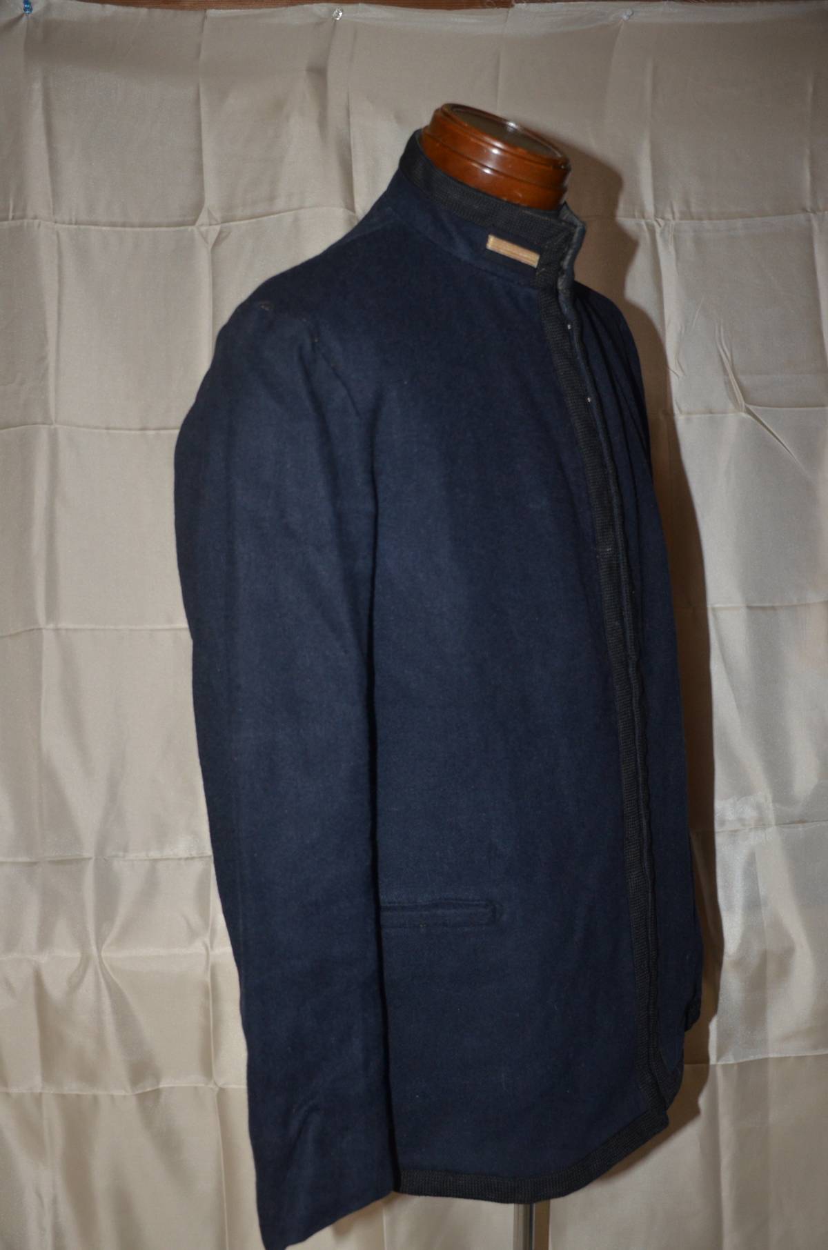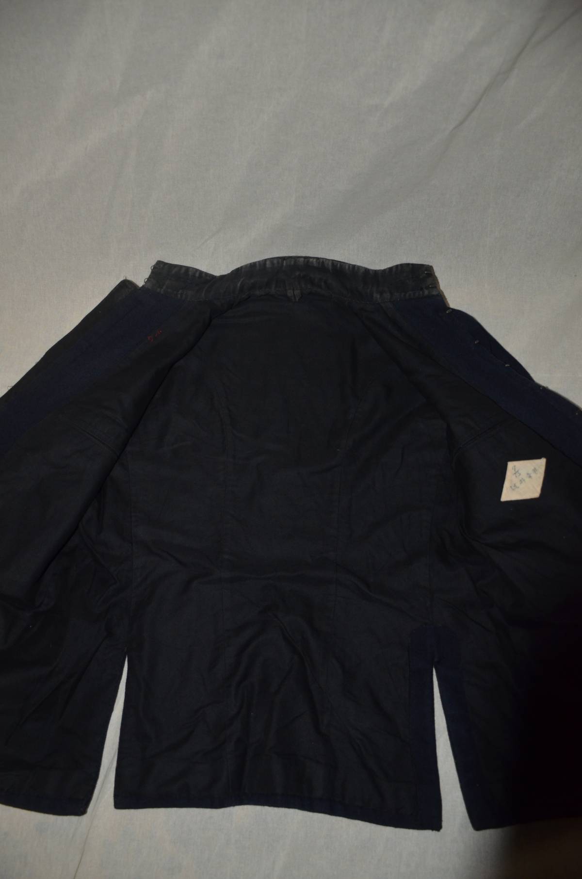 海軍一種兵曹長上衣です。菱形片布には、「7/13 記名」が入っています。兵曹長襟章が付いています。サイズは、肩幅43センチ、袖上部線57センチ、袖下部線47センチ、襟上部から裾まで70センチ、脇44センチです。本文下の追加写真もご覧ください。ヤマト運輸宅急便で、全国一律700円でお送りさせていただきます。