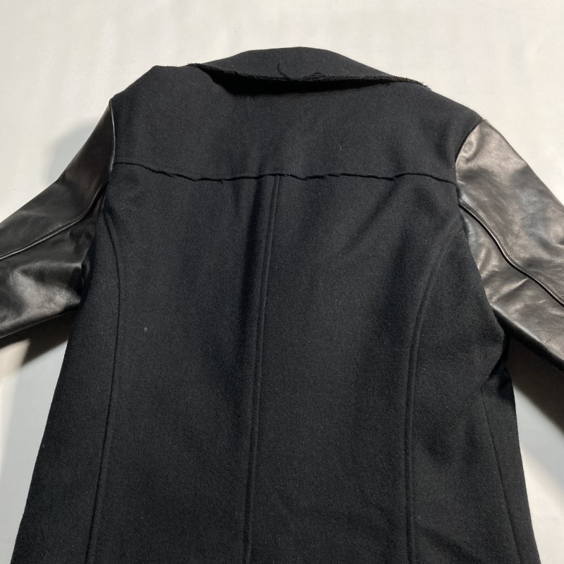 wjk★定価99000円★STAND P-COAT 1039 wl48oa★牛革レザー袖 スタンドカラーPコート メルトン 裏キルティング Thinsulateシンサレート 黒 S 收藏