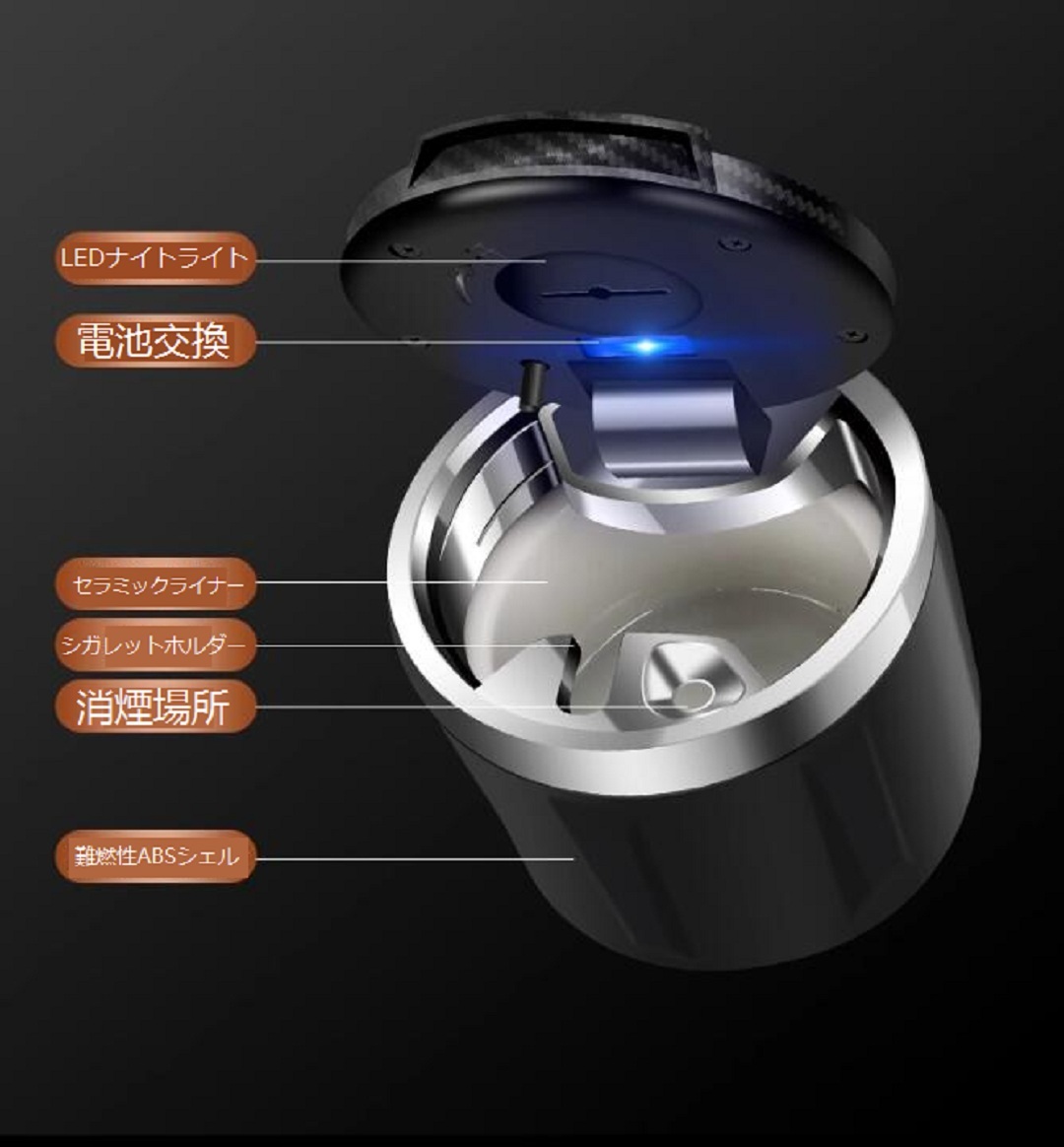 ◆ボルボ VOLVO◆車用灰皿 LEDライト付き 車載 ポータブル 専用-車のロゴ 臭い漏れ防止 自然消火 蓋付き タバコ灰皿 3色選択可 ブラック 收藏