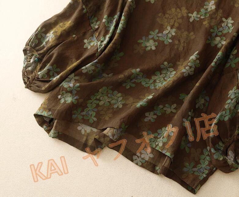 新品☆ ゆったり大きいサイズ カジュアル チュニック 綺麗 花柄 長袖 通勤 ブラウスシャツ コーヒーLサイズ(サイズ選べる) 收藏