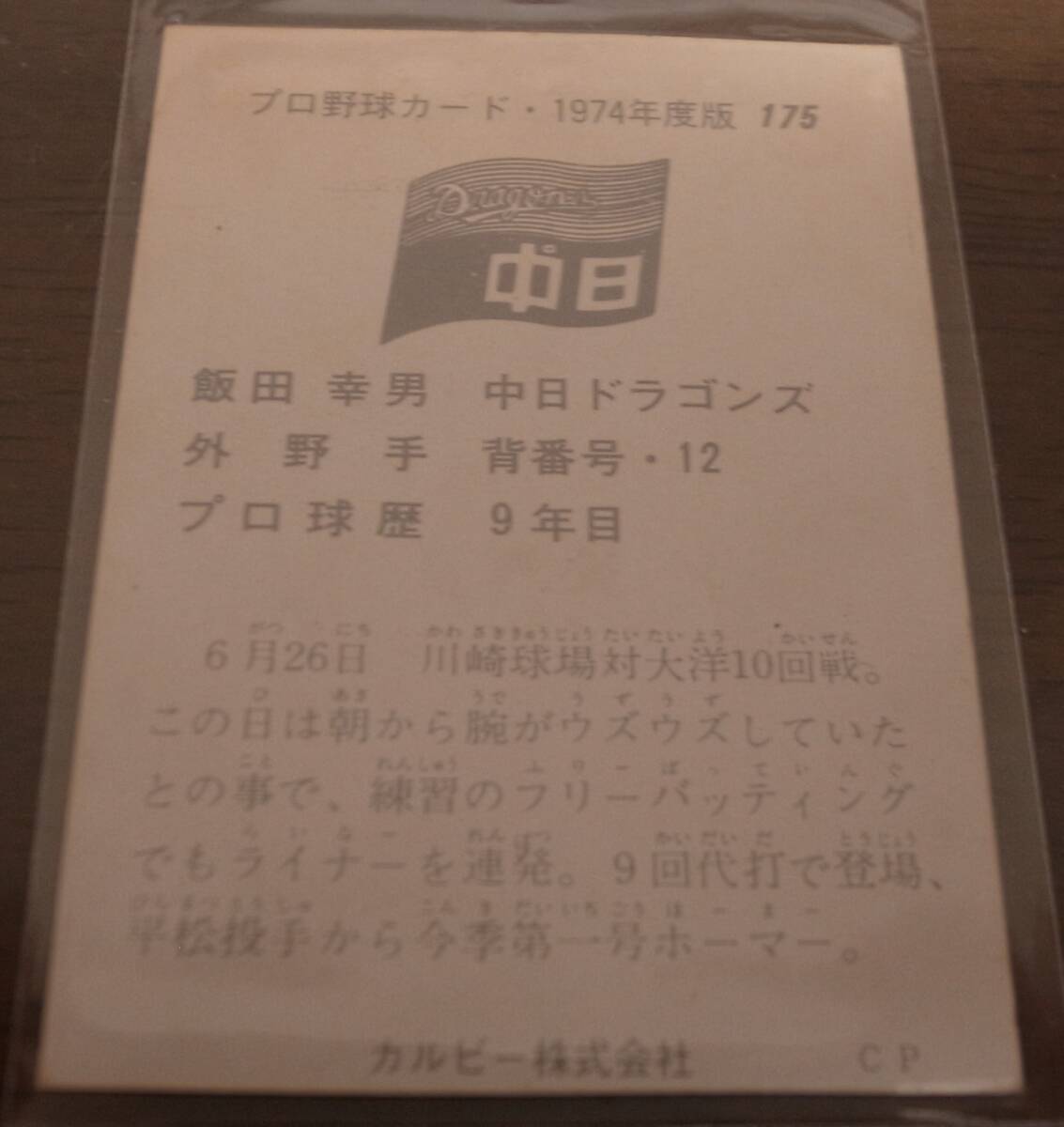 | ■カルビープロ野球カード1974年/No175飯田幸男/中日ドラゴンズ | ||