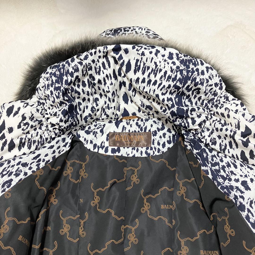 希少 BALMAIN レオパード ダウンコート ブルーフォックス ファー 白 M 收藏