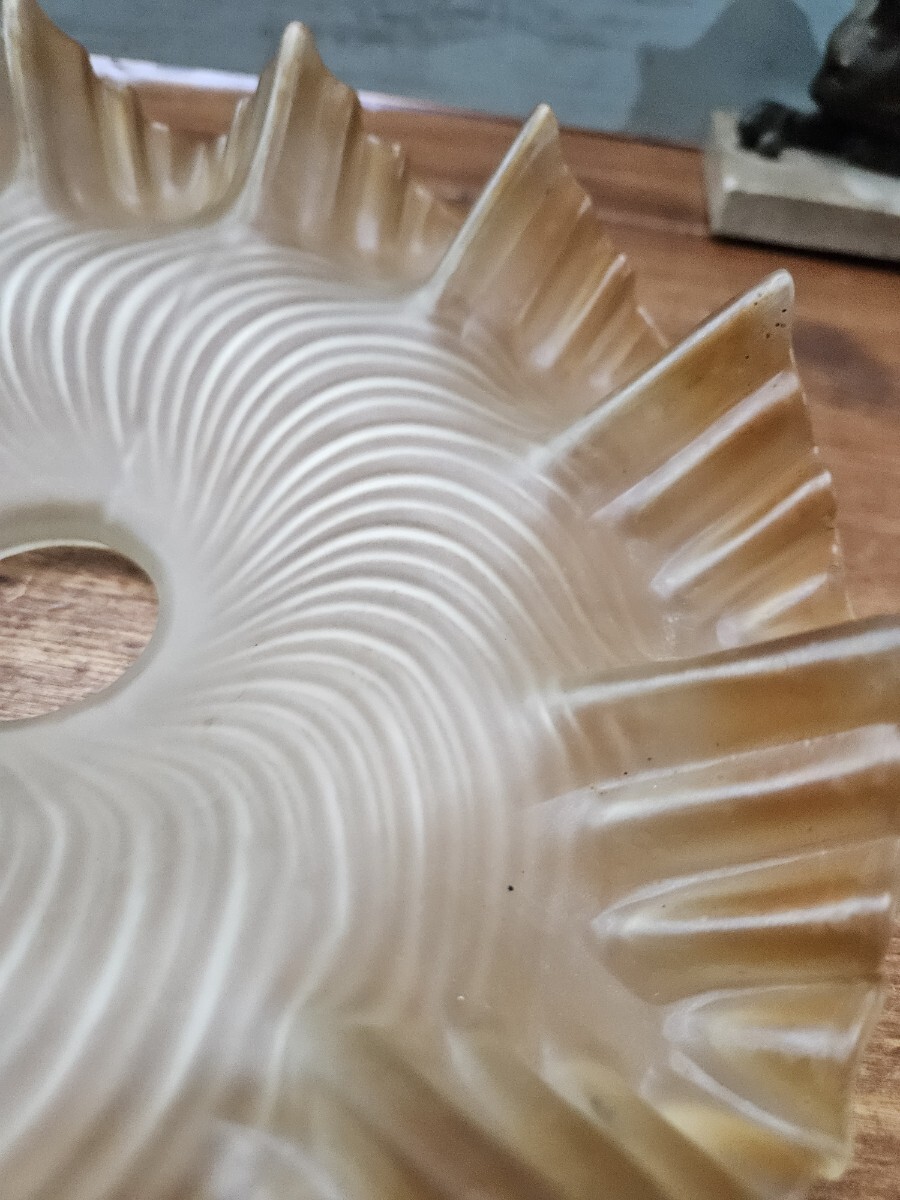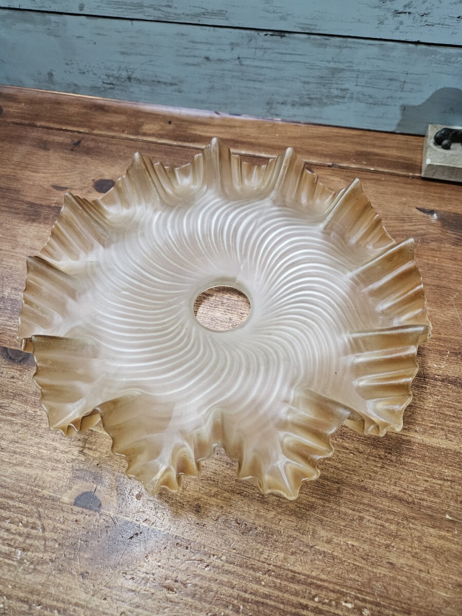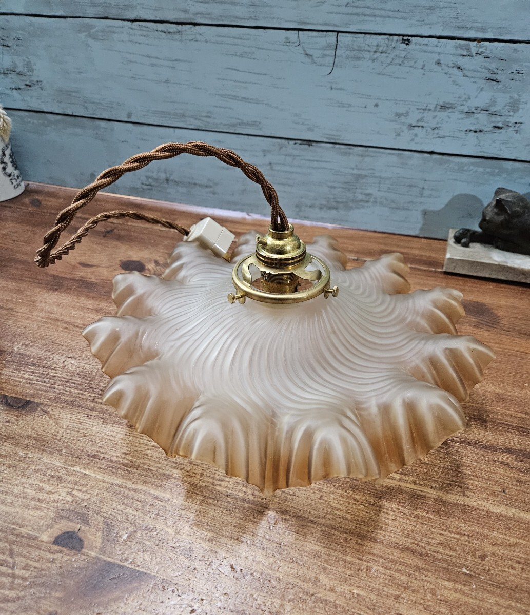 フランスアンティーク フリルのガラスシェード ひらひら 天井照明用 電笠 ペンダントライト カフェ フレンチ インテリア ブラウン系 E10 收藏