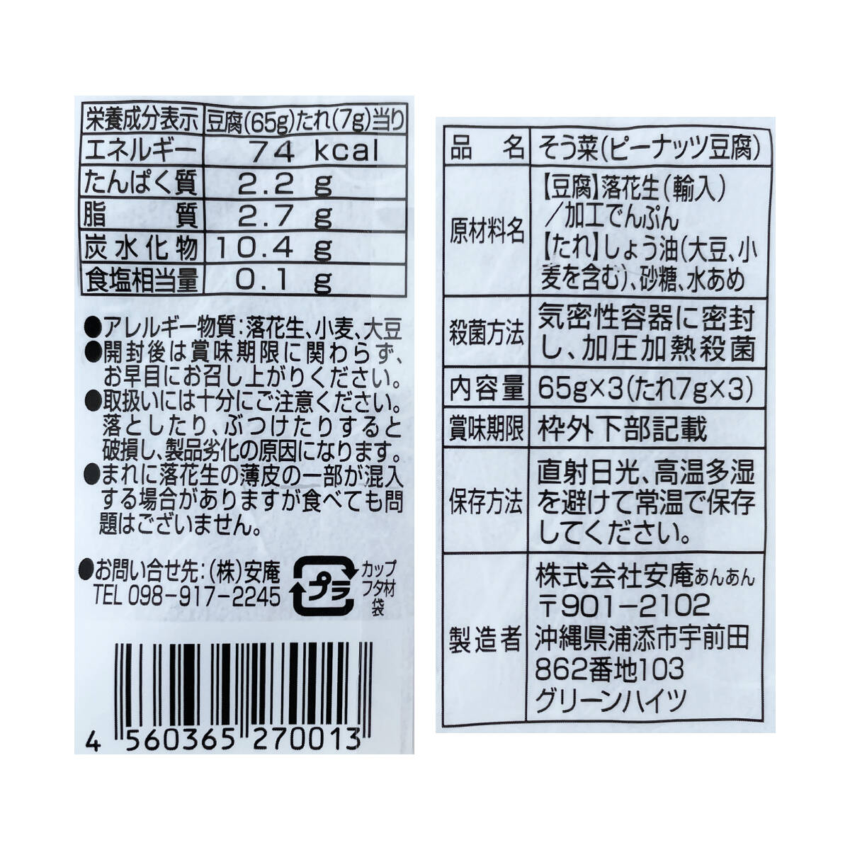 沖縄の味 じーまーみ豆腐 5袋(1袋×3カップ入り) 常温タイプ 安庵謹製 ジーマーミ豆腐 沖縄旅行 沖縄お土産 收藏