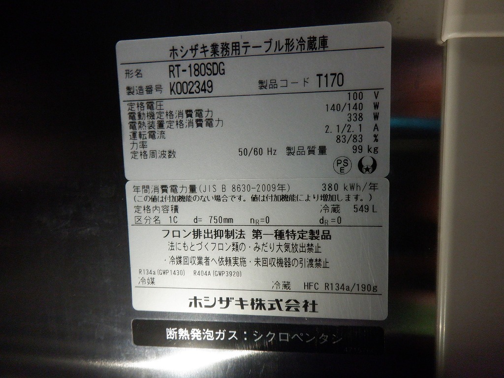 TKR7D-8/ホシザキ/業務用テーブル形冷蔵庫/RT-180SDG/2020年製/100V/549L/厨房 收藏