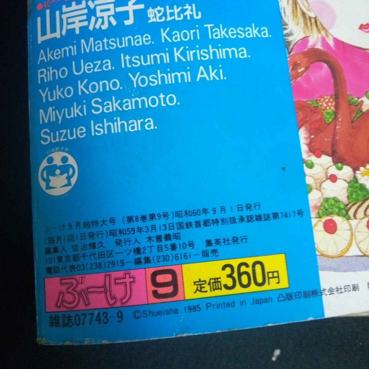 Lf-076/ぶーけ 月刊 9月号超特大号 有閑倶楽部 一条かおり アプローズ-喝采- 株式会社集英社 昭和60年発行/L2/70502