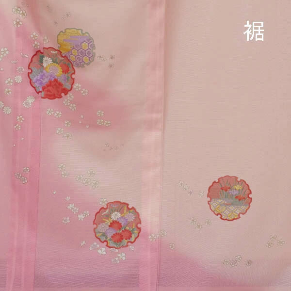 【日本製】仕立上り 絽付下げ 雪輪に小花柄(ピンク色)(054)洗える ポリエステル 撥水加工 7月 8月 收藏