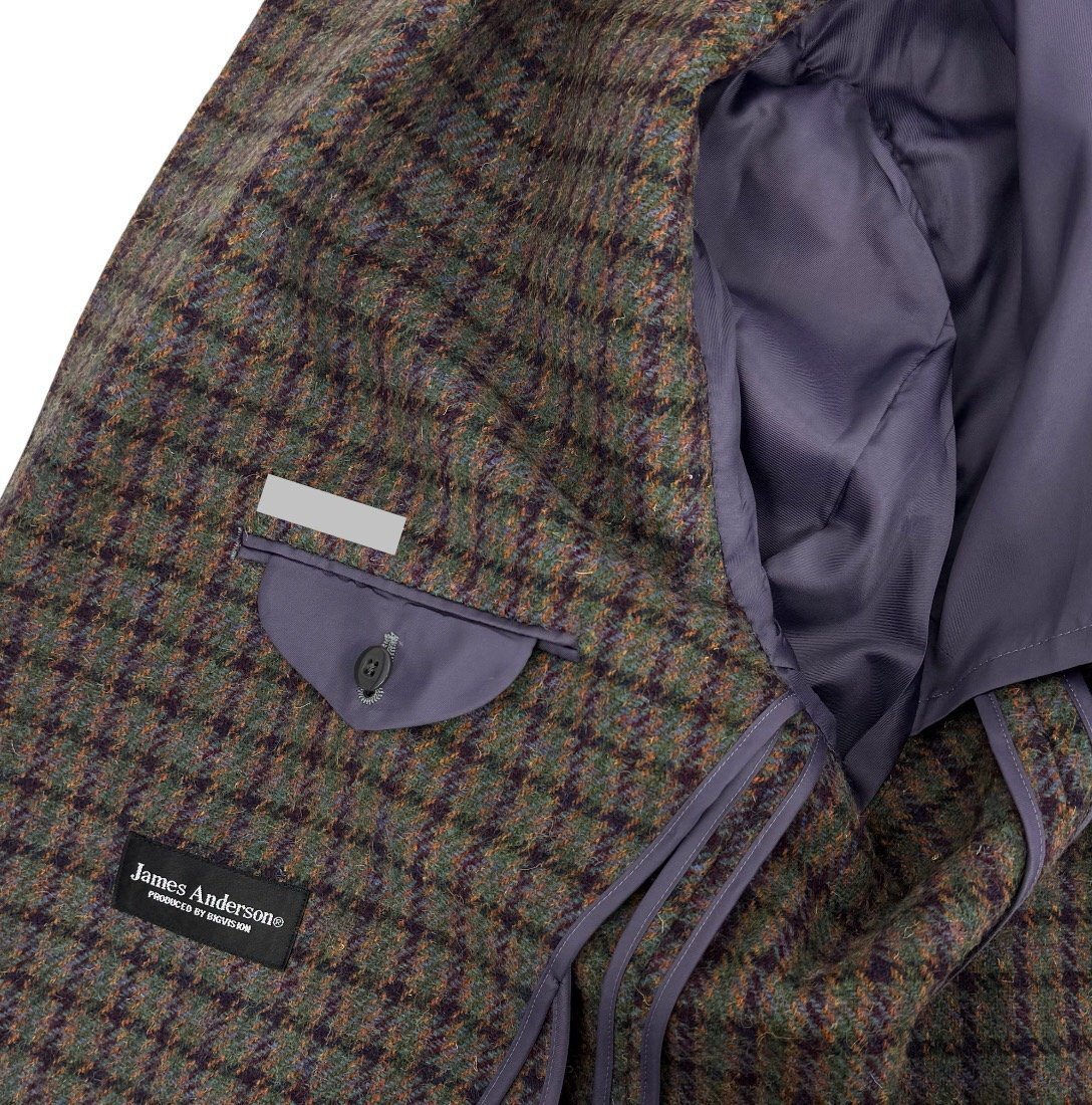 James Anderson × Harris Tweed ジェイムズアンダーソン ハリスツイード チェック柄 シングル 2B ジャケット ブレザー XXL位 緑/紫 日本製 收藏