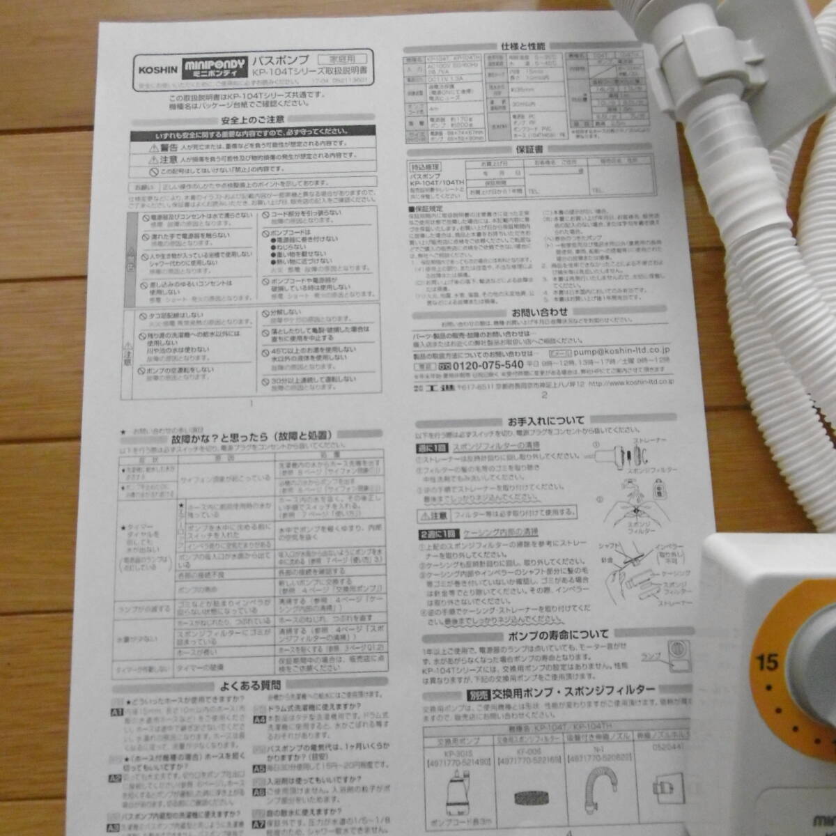 【中古美品】工進(KOSHIN) 家庭用バスポンプ KP-104TH 風呂 残り湯 11L/分 /タイマー、ホース、伸縮ノズル、取説、おまけ付き 收藏