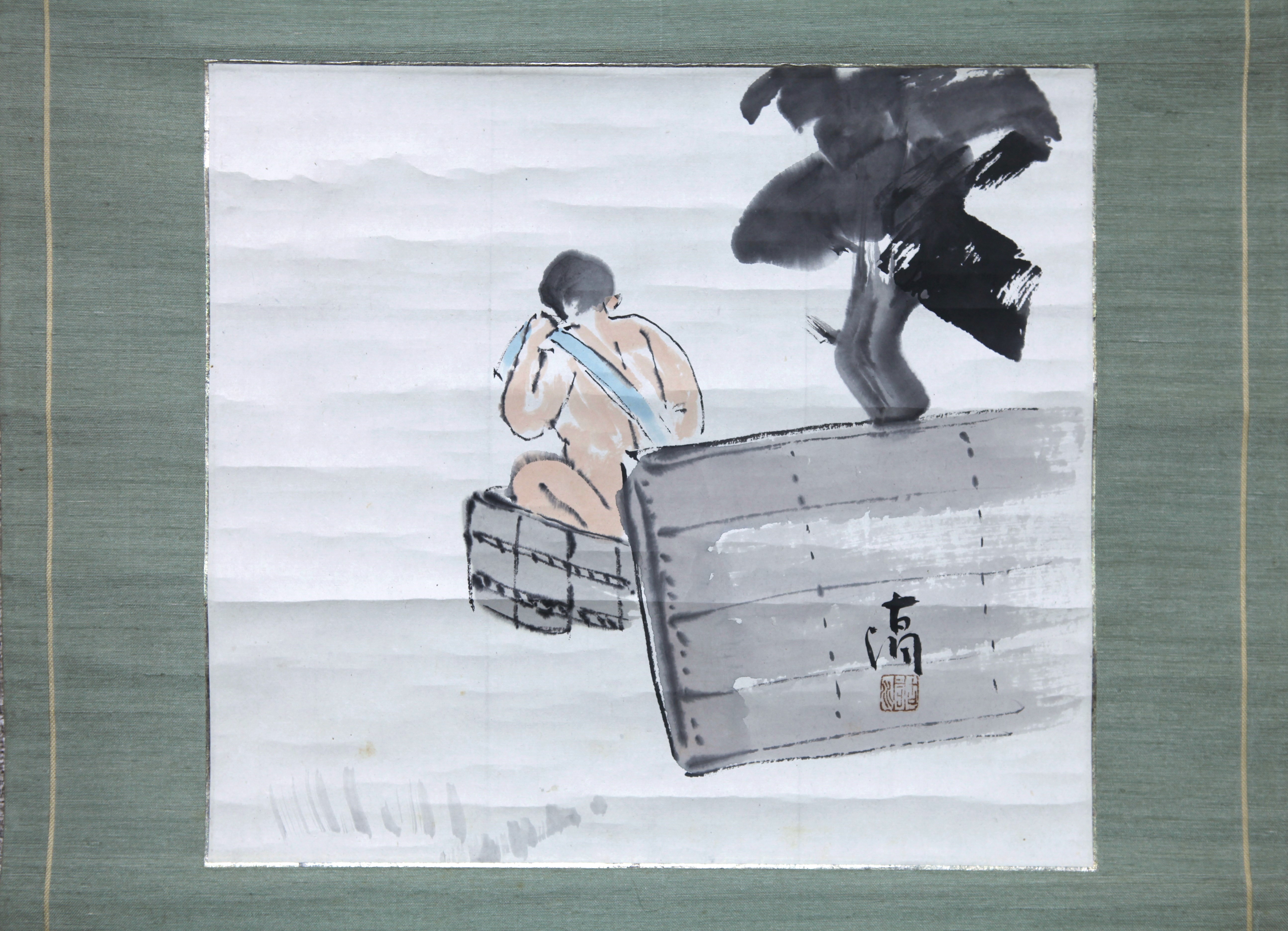 【真作】【風車】 山中古洞 「浴」◎肉筆紙本◎明治昭和期の画家 東京出身 人物画を得意 内国勧業博覧会に出品 烏合会,国画玉成会 收藏