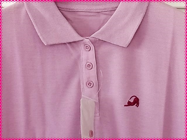 【送料無料】LL * 新品タグ付き 猫刺繍が可愛い☆ゆったり 綿混素材かのこポロシャツ♪ ピンク系 UV対策 吸汗速乾 抗菌防臭 收藏