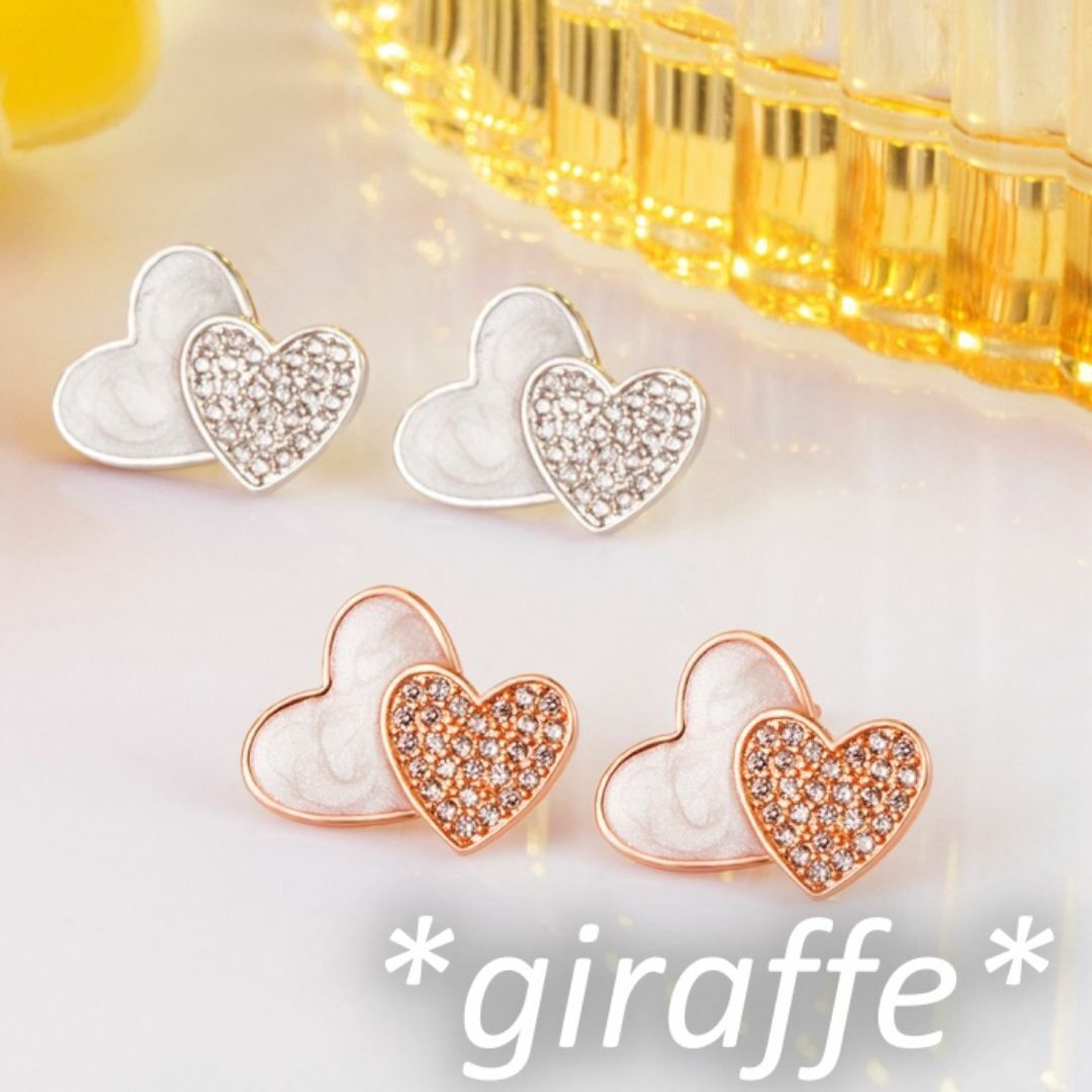 B549 匿名配送 ピアス レディース ダブルハート ジルコニア スタッドピアス s925 シルバー シンプル かわいい 收藏