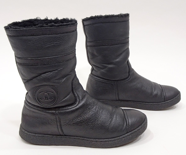 【質コニシ】【CHANEL/シャネル】ショートブーツ レザー ブラック 黒 サイズ36 約23cm 裏起毛 レディース 箱付き【送料込み】m0007m 收藏