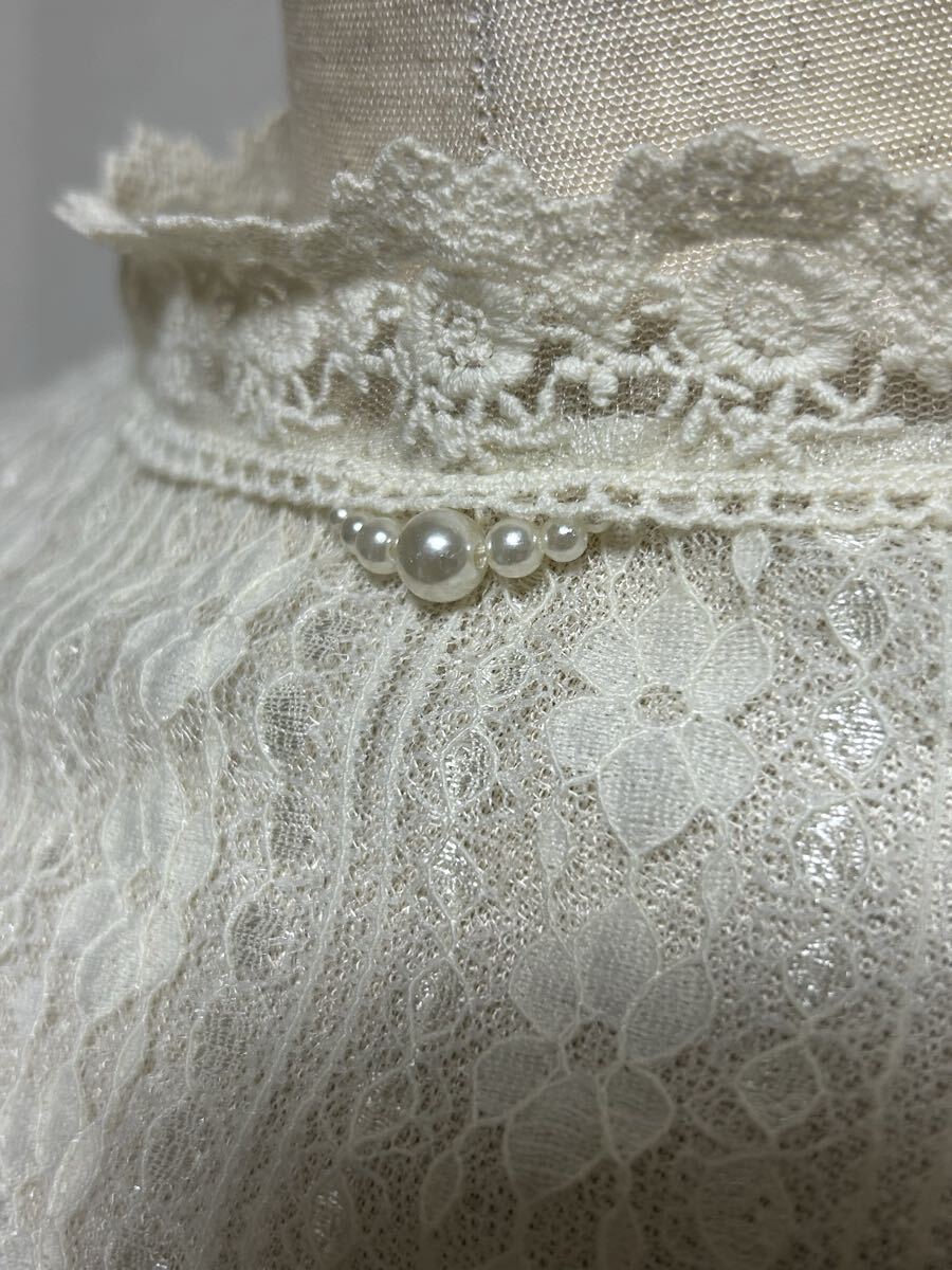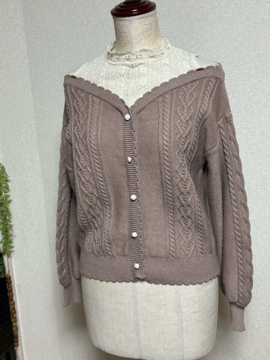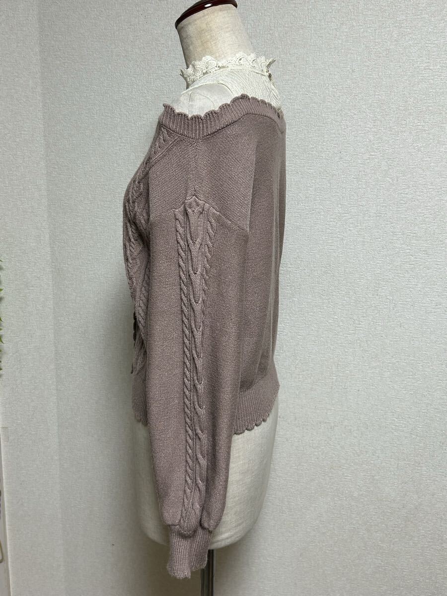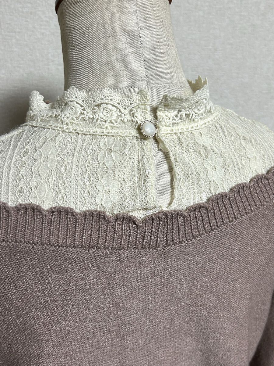 【 axes femme POETIQUE★アクシーズファム】ニットトップス・レイヤード風オープンショルダー・フロント飾りボタン・Mサイズ 收藏