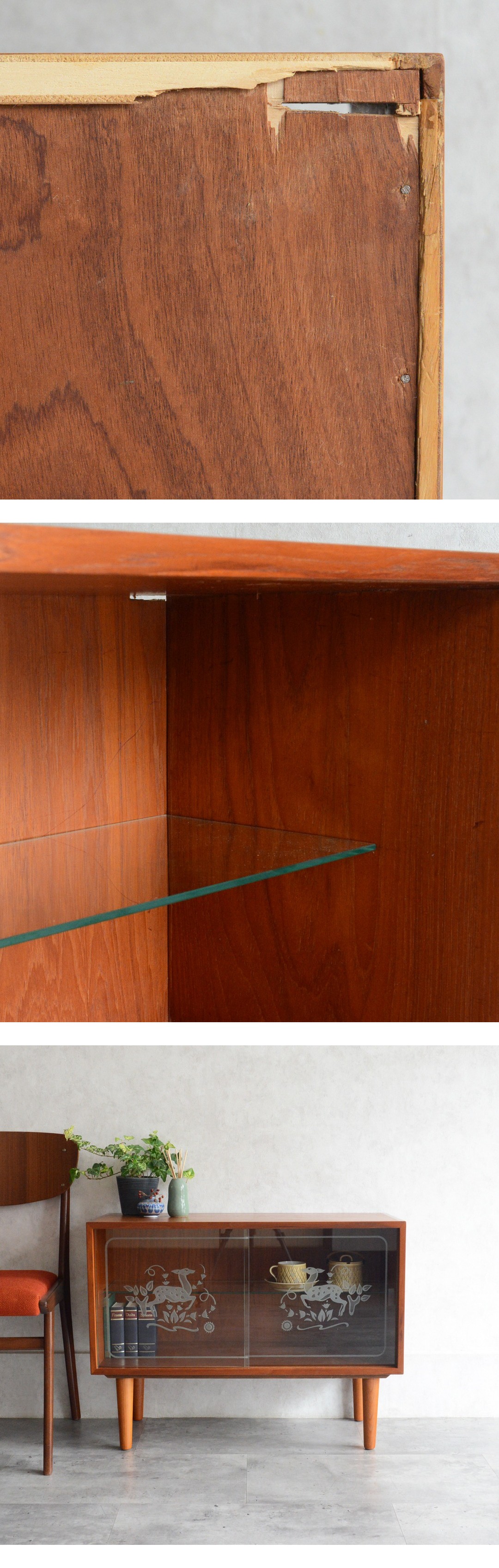 デンマーク 北欧ヴィンテージ バンビ チーク ガラスキャビネット 北欧家具 ディスプレイキャビネット ショーケース 飾り棚 北欧デザイン 收藏