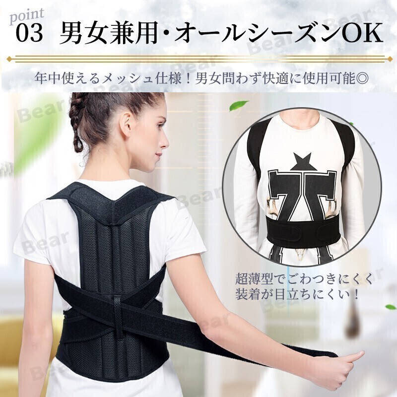 猫背 矯正 ベルト 姿勢 サポーター Lサイズ 背筋 背中 肩こり 反り腰 巻き肩 腰痛 背骨 腰椎 コルセット 男性 女性 男女兼用 ねこぜ 薄型