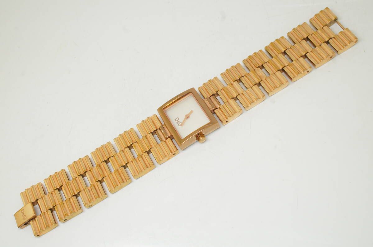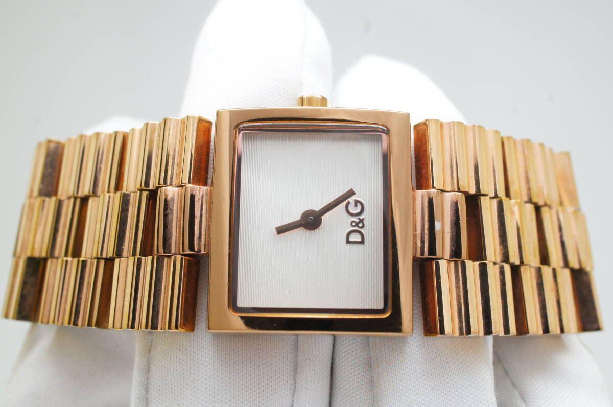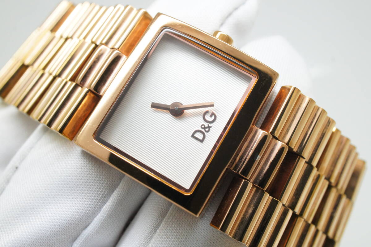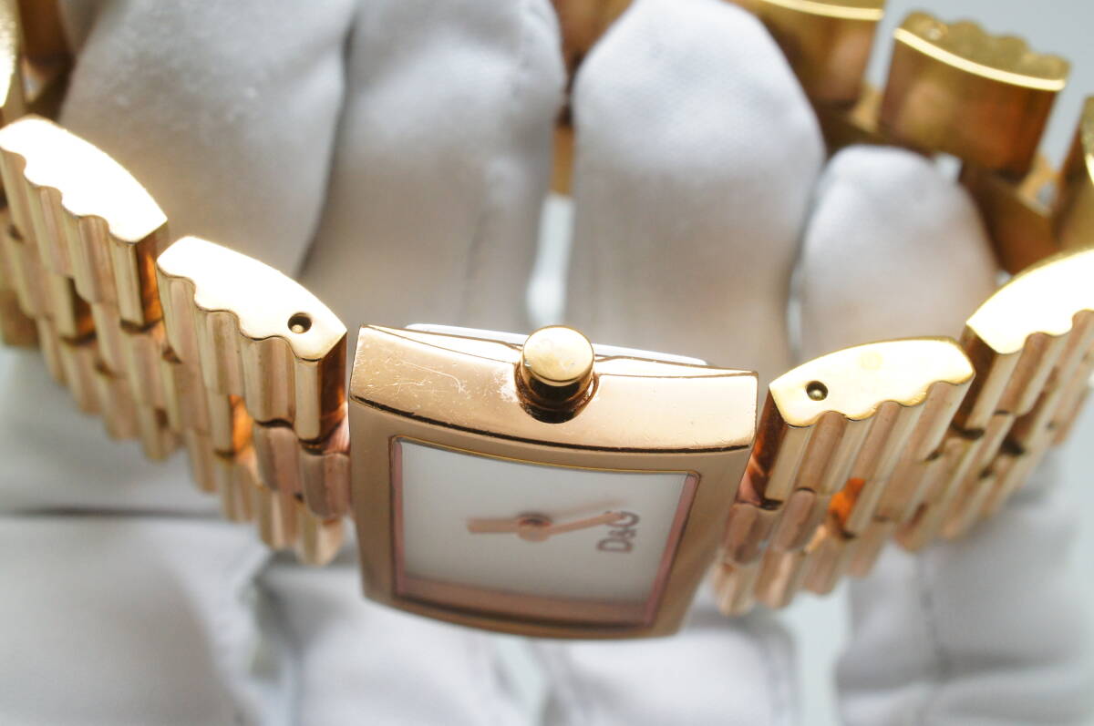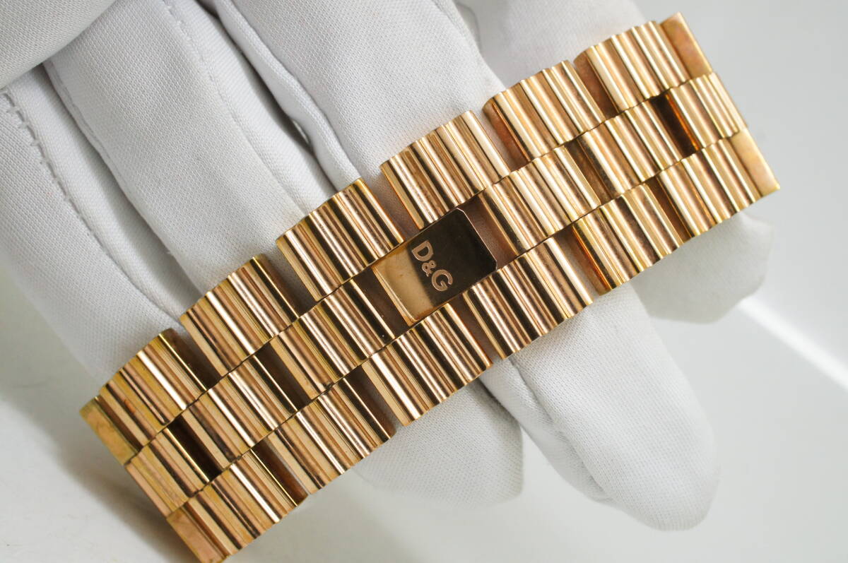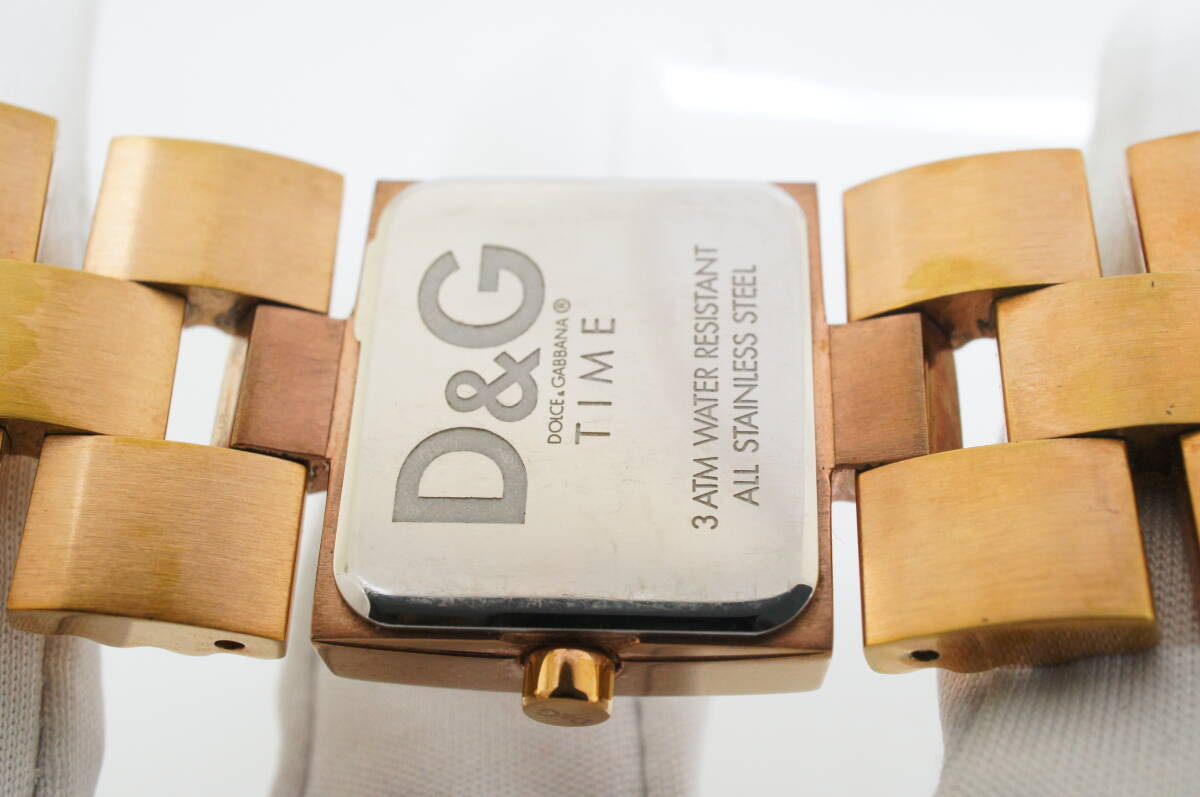 J179●作動良好 D&G DOLCE&GABBANA ドルチェ&ガッバーナ TIME ブレスウォッチ スクエア型 レディース腕時計 ゴールド金 クォーツ 收藏