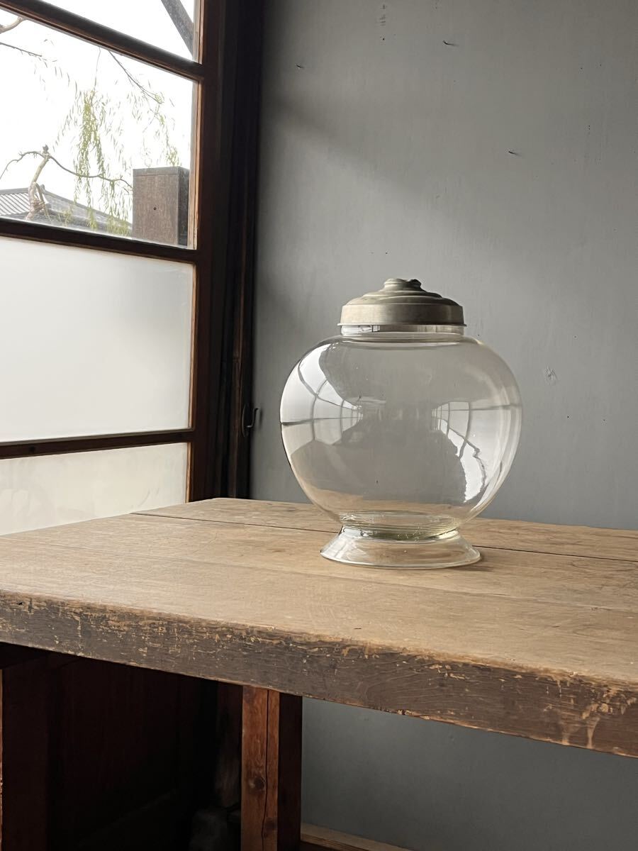 お煎餅屋さんでお煎餅を入れる際に使われていた丸々としたフォルムが可愛い瓶。少しがたつきがございます。