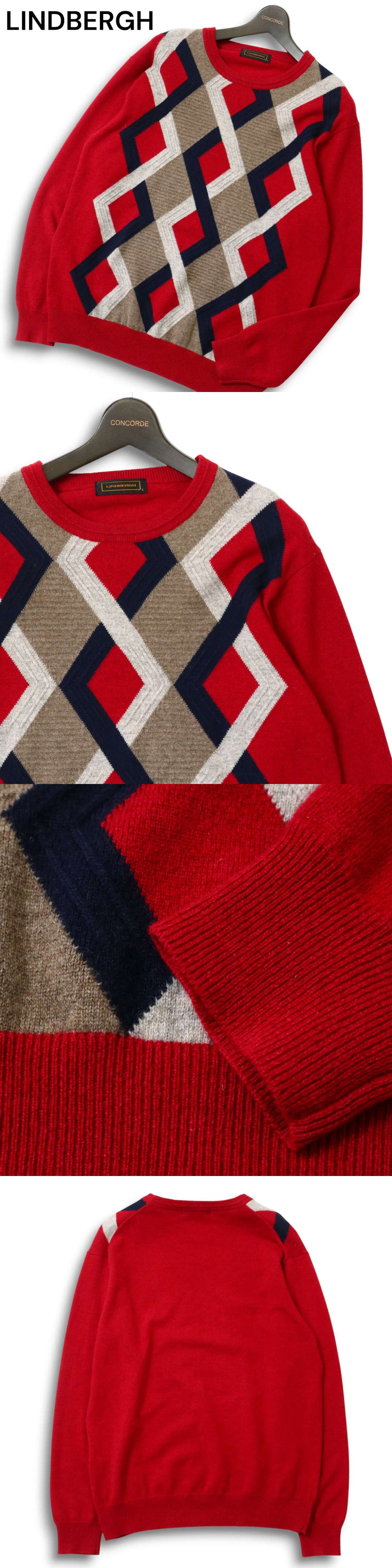 LINDBERGH リンドバーグ 秋冬 カシミヤ100%★ 幾何学柄 セーター ニット Sz.L メンズ 收藏