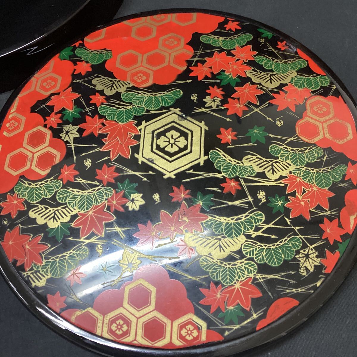 三段重 重箱 丸重 丸型 おせち 漆器 漆塗り アンティーク
