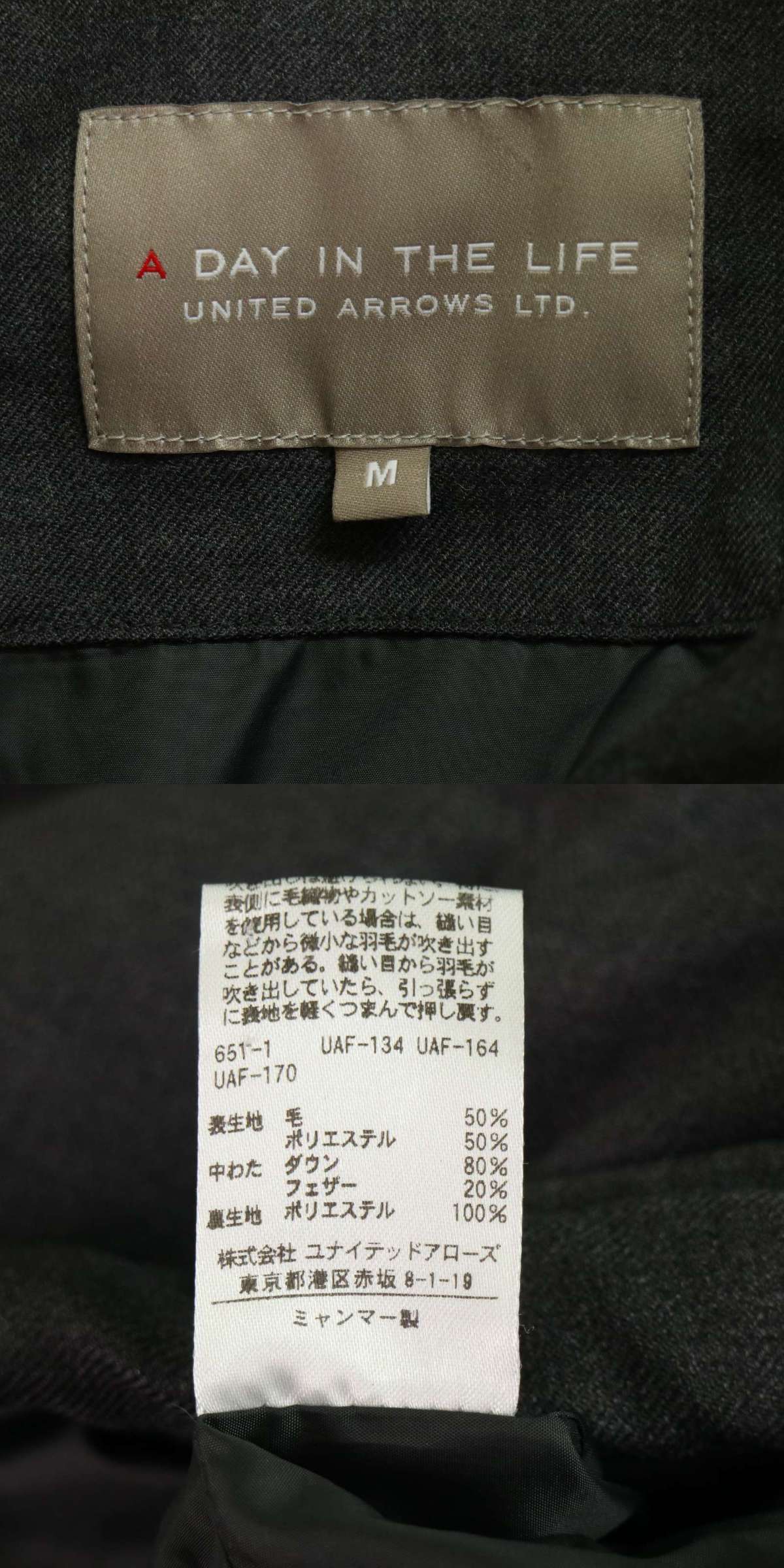A DAY IN THE LIFE ユナイテッドアローズ 秋冬 ウール★ ジップ ダウン フーディー ジャケット Sz.M メンズ 灰 グレー 收藏