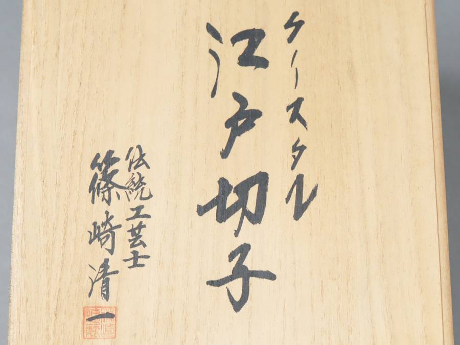 NnL4 江戸切子 篠崎清一 花瓶 24cm 4.1kg|飾り壺 栞 共箱 美品 收藏