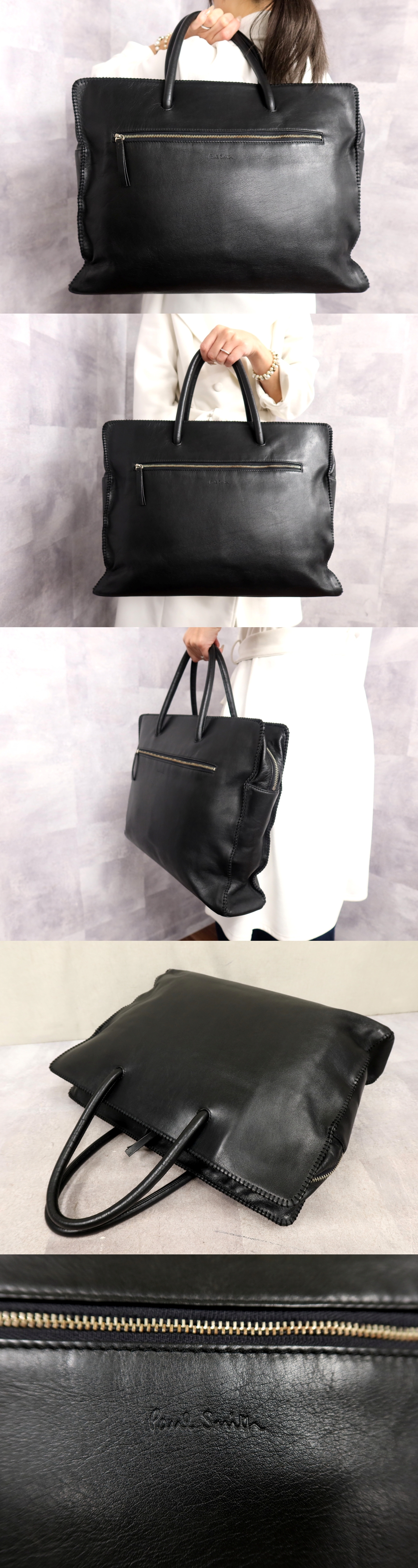 超美品●Paul smith ポール・スミス●メンズ●ロゴ型押し●カーフ レザー 本革●ブリーフケース●黒●シルバー金具●A4 ビジネス●Js63687 收藏