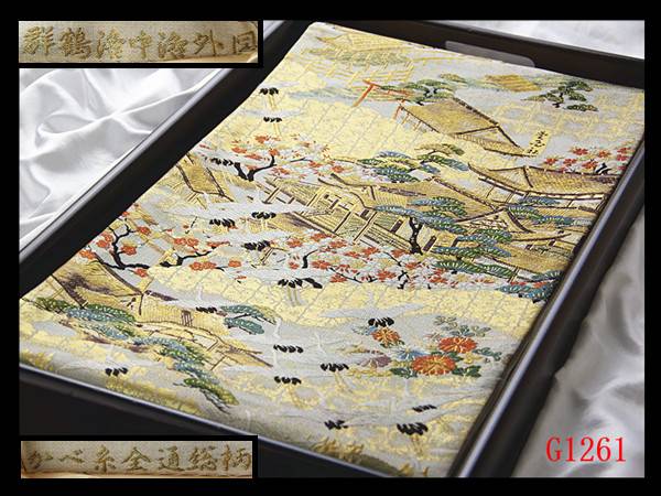 【G1261】厳選逸品 かべ糸全通総柄 群鶴洛中洛外図 象牙色地 気品豊かに 正絹純金糸高級美術袋帯 ◇検◇簪着物名古屋帯帯締め 收藏