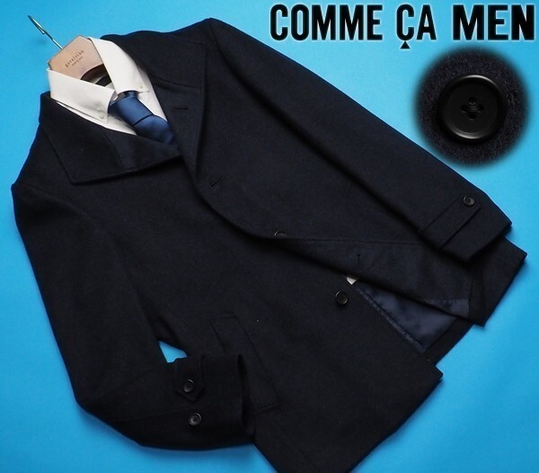 新品定価6.4万円 COMME CA MEN コムサメン 秋冬 カシミヤ/ウールビーバー イタリアンカラーハーフコートS紺(09) 10WA05 收藏