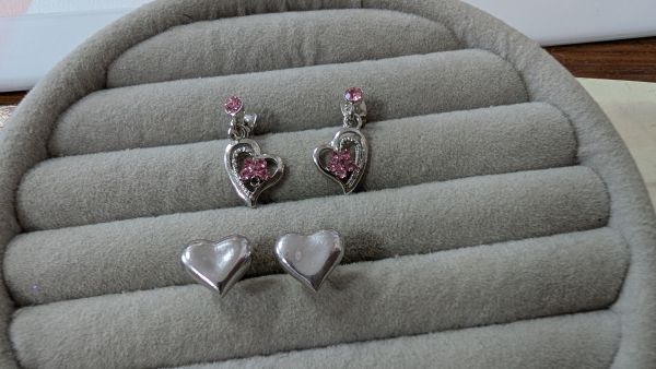 | ハートモチーフ ピアス2個セット シルバーカラー クリアピンクビジュー | |