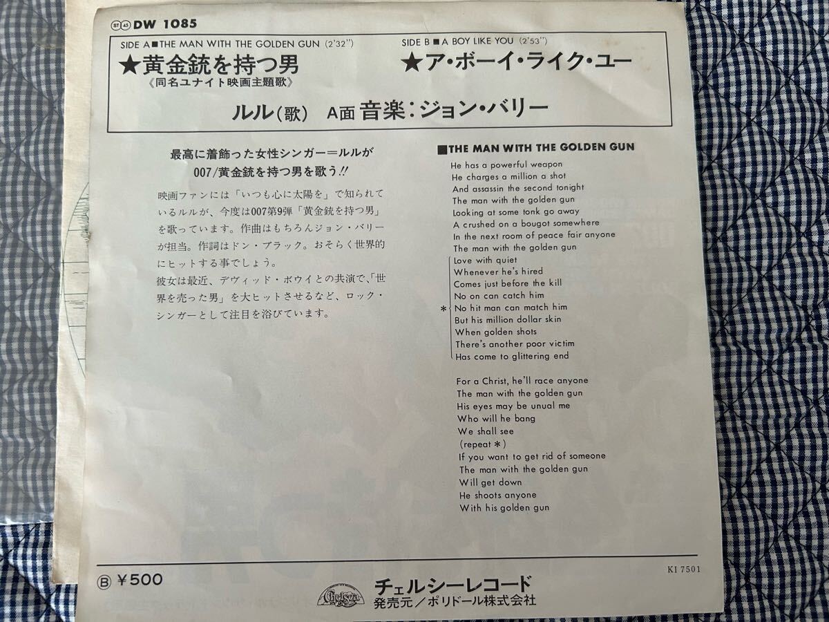007黄金銃を持つ男★レコード★サウンドトラック★ジョン・バリー★歌ルル★ア・ボーイ・ライク・ユー★シング盤★送料込★音出し確認無し 收藏