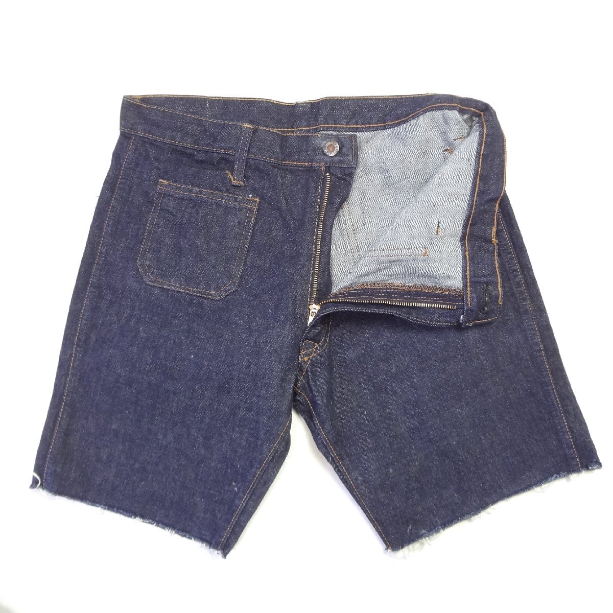 バイソンBISONの70年代製タロンジッパーデニムショートパンツ、実店舗の店頭展示品を一度洗濯しただけの未使用品、綿100%、ハーフパンツ