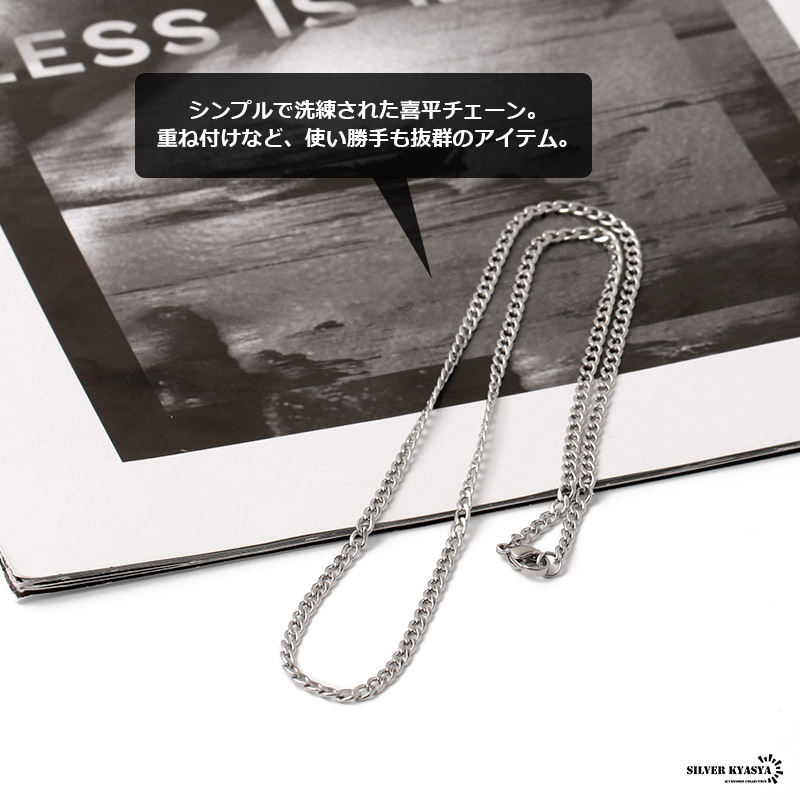(50cm) チェーンネックレス 喜平チェーン 幅3mm ステンレス シルバー 銀色 ネックレス カニカン 喜平 シンプル 細身 收藏