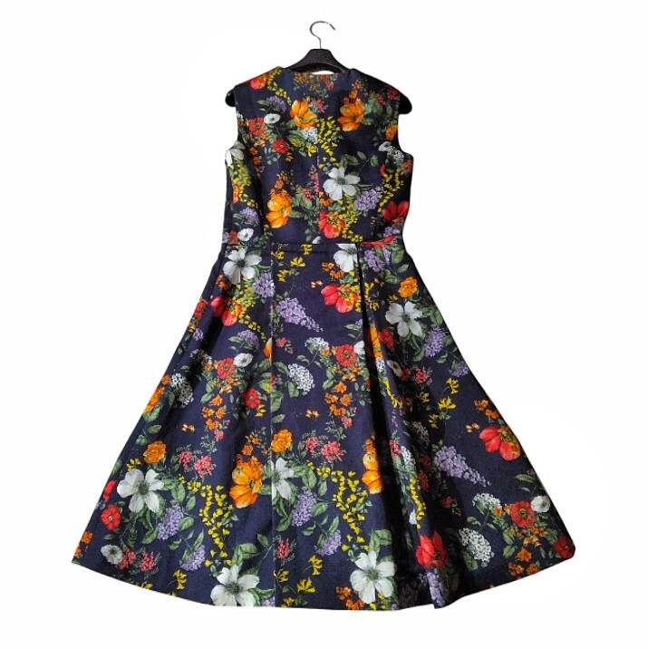 78 【BIANCA EPOCA】 ビアンカ エポカ 花柄 ワンピース 36 S ネイビー 総柄 カラフル フラワー ひざ丈 ノースリーブ フォーマル フレア 收藏
