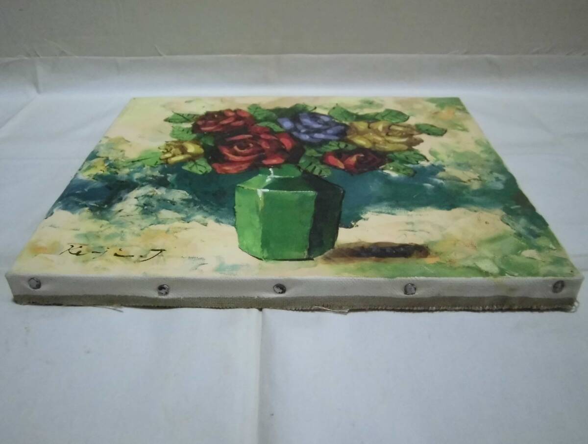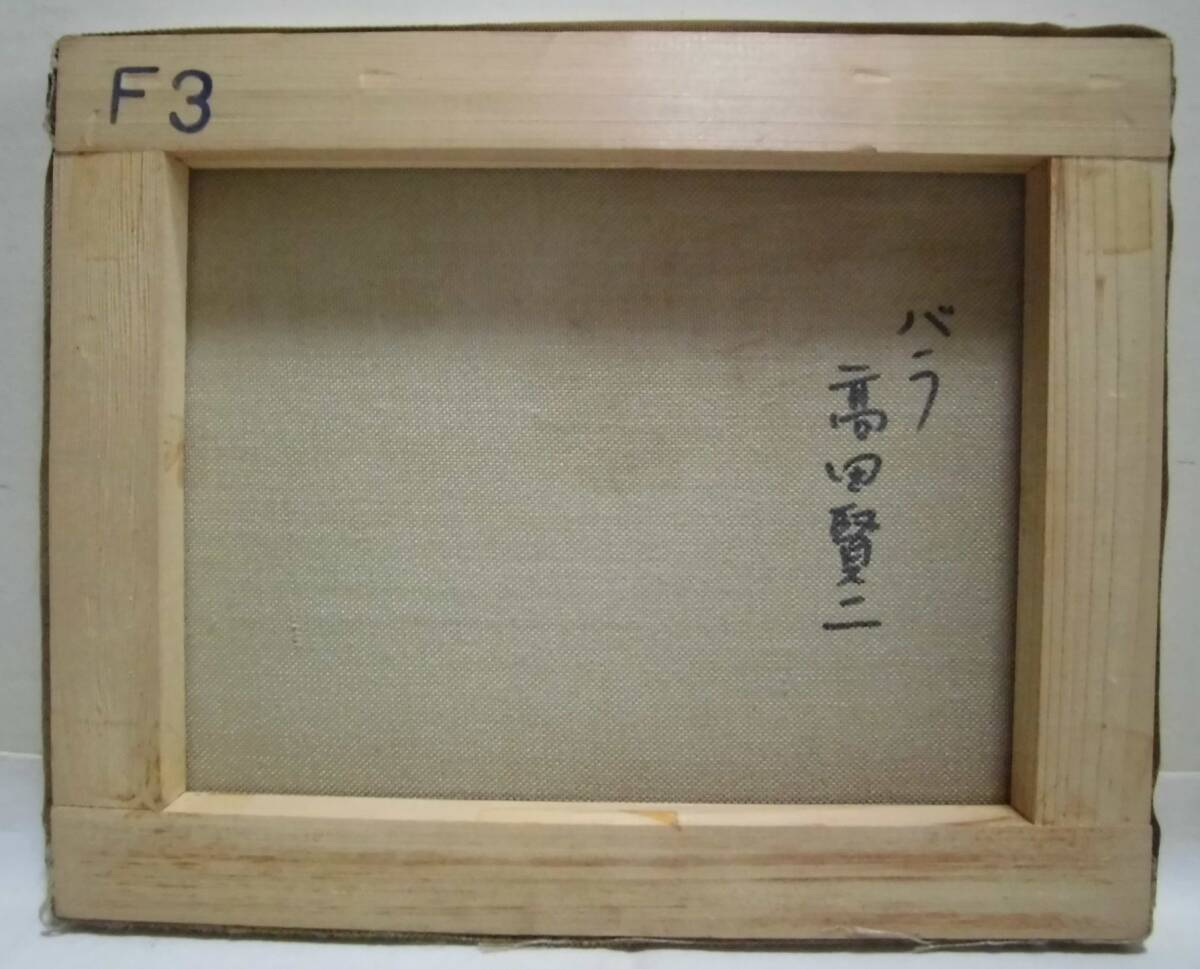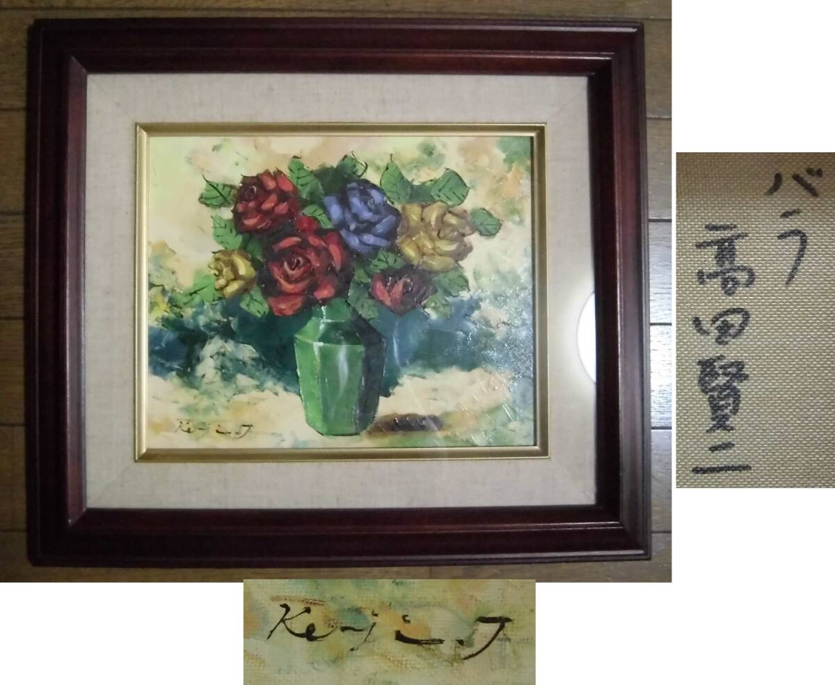 油絵 ばら 肉筆 高田賢二 岐阜 個展グループ展 ガラス 木製 額縁入り 花瓶のバラ 薔薇 壁掛け 飾り物 工芸品 レトロ 「真作」 收藏